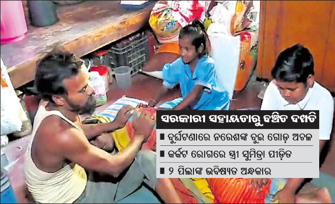 ଖୋର୍ଦ୍ଧା ଅଫିସ,୧୬ା୩: ଦିନେ ତାଙ୍କ ପରିବାରରେ ହସଖୁସି ଥିଲା। ଝିଅ ଓ ପୁଅଙ୍କୁ ପାଠ ପଢାଇ ସେ ବଡ଼ ମଣିଷ କରିବେ ବୋଲି ସ୍ବପ୍ନ ଦେଖିଥିଲେ। ହେଲେ ଆଜି ସବୁ ସ୍ବପ୍ନ ଏକପ୍ରକାର ଉଜୁଡ଼ିଯାଇଛି। ଯନ୍ତ୍ରଣାସିକ୍ତ ଜୀବନ ତାଙ୍କ ପାଇଁ ଦୁର୍ବିଷହ ହୋଇପଡ଼ୁଛି। ସ୍ବାଭିମାନକୁ ନେଇ ବାଟ ଚାଲୁଥିବା ବ୍ୟକ୍ତିଟି ଆଜି ଦିବ୍ୟାଙ୍ଗ ପାଲଟିଯାଇଥିବାରୁ ଅନ୍ୟ ଉପରେ ନିର୍ଭରଶୀଳ। ଏହି ବ୍ୟକ୍ତି ଜଣଙ୍କ ହେଉଛନ୍ତି ଖୋର୍ଦ୍ଧା ଜିଲା ବୋଲଗଡ଼ ବ୍ଲକ ବଡକୁମାରୀ ପଞ୍ଚାୟତ କୋରପଡ଼ା ଗ୍ରାମର ନରେଶ ପାଲଟାସିଂ। ଭଲ ଡ୍ରାଇଭର ହେବାକୁ ମନସ୍ଥ କରିଥିଲେ ସେ। ତେବେ ଏକ ସଡ଼କ ଦୁର୍ଘଟଣାରେ ନରେଶଙ୍କ ଦୁଇ ଗୋଡ଼ ଅଚଳ ହୋଇଗଲା। ହାତରେ ଗାଡ଼ିର ଷ୍ଟିୟରିଂ ପରିବର୍ତ୍ତେ ସବୁ ଦିନ ପାଇଁ ଦୁଇଟି ଆଶାବାଡ଼ି ତାଙ୍କର ସାହାରା ପାଲଟିଗଲା। ସ୍ତ୍ରୀ, ଗୋଟିଏ ପୁଅ ଓ ଗୋଟିଏ ଝିଅକୁ ତାଙ୍କ ନେଇ ପରିବାର। ଏହି ପରିବାର ପାଇଁ ସେ ଯନ୍ତ୍ରଣାକୁ ଭୁଲିବାକୁ ଚେଷ୍ଟା କରୁଛନ୍ତି। ଭାଙ୍ଗି ନ ପଡ଼ି ନିଜସ୍ବ ଉଦ୍ୟମରେ ଦୋକାନ କରି ଗୁଜରାଣ ମେଣ୍ଟାଉଛନ୍ତି। ତେବେ ଏତିକିରେ ସରିଯାଇନି ନରେଶଙ୍କ ଯନ୍ତ୍ରଣା। ସ୍ତ୍ରୀ ସୁମିତ୍ରା କର୍କଟ ରୋଗରେ ପୀଡ଼ିିତ। ଚିକିତ୍ସାରେ ଅର୍ଥ ସାଜିଛି ବାଧକ। ଏଯାବତ ତାଙ୍କୁ ଆବାସ ଯୋଜନାରେ ଘର ମିଳି ନ ଥିବାବେଳେ ସରକାରୀ ସୁବିଧାରୁ ମଧ୍ୟ ବଞ୍ଚିତ। କେବଳ ଭଗବାନଙ୍କୁ ଭରସିଥିବାବେଳେ ସରକାରୀ ସହାୟତାକୁ ଚାହିଁ ବସିଛନ୍ତି।