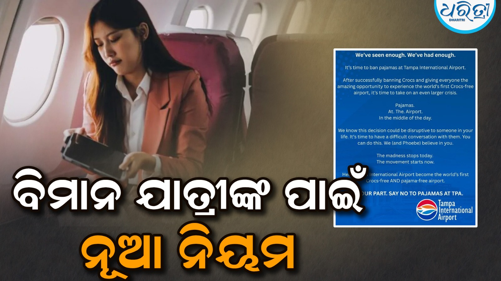 ନୂଆଦିଲ୍ଲୀ,୨୭।୨: ଆମେରିକାର ଟାମ୍ପା ଅନ୍ତର୍ଜାତୀୟ ବିମାନବନ୍ଦରରୁ ଏକ ସୋସିଆଲ ମିଡିଆ ପୋଷ୍ଟ ଭାଇରାଲ ହେଉଛି। ଏଥିରେ ଦାବି କରାଯାଇଛି ଯେ ବିମାନ ଯାତ୍ରୀମାନଙ୍କୁ ପାଇଜାମା ପିନ୍ଧିବାକୁ ବାରଣ କରାଯିବ। ବିମାନବନ୍ଦର ପକ୍ଷରୁ ବିମାନବନ୍ଦର ଭିତରେ ଲୋକପ୍ରିୟ କ୍ରୋକ୍ସ ଜୋତା ପିନ୍ଧିବାକୁ ସଫଳ ଭାବରେ ନିଷେଧ କରାଯାଇଥିବା ଦାବି କରାଯିବା ପରେ ଏହି କଥିତ ପ୍ରତିବନ୍ଧକ ଲଗାଯାଇଛି । @FlyTPA ହ୍ୟାଣ୍ଡେଲରୁ ସୋସିଆଲ ମିଡିଆରେ ଏକ ପୋଷ୍ଟ କରାଯାଇଥିଲା। ଏଥିରେ ଲେଖାଥିଲା, ବହୁତ ହେଲା। ଟାମ୍ପା ଅନ୍ତର୍ଜାତୀୟ ବିମାନବନ୍ଦରରେ ପାଇଜାମା ଉପରେ ପ୍ରତିବନ୍ଧକ ଲଗାଇବାର ସମୟ ଆସିଛି ।
