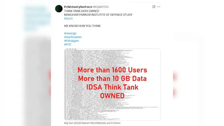 X ରେ ଏକ ହ୍ୟାଣ୍ଡେଲ, ପାକିସ୍ତାନ ସାଇବର ଫୋର୍ସ, ଦାବି କରିଛି ଯେ ହ୍ୟାକରମାନେ ମିଲିଟାରୀ ଇଂଜିନିୟର ସର୍ଭିସେସ ଏବଂ ମନୋହର ପାରିକର ଇନଷ୍ଟିଟ୍ୟୁଟ ଅଫ୍ ଡିଫେନ୍ସ ଷ୍ଟଡିଜ ଆଣ୍ଡ ଆନାଲିସିସର ସମ୍ବେଦନଶୀଳ ତଥ୍ୟରେ ପ୍ରବେଶ କରିଛନ୍ତି।