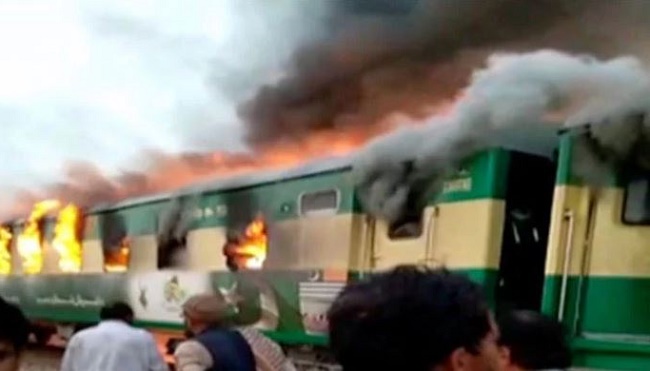 ସେ କହିଛନ୍ତି, ଗତ ରାତିରେକରାଚିରୁ ଲାହୋର ଯାଉଥିବା କରାଚି ଏକ୍ସପ୍ରେସର ବିଜନେସ କ୍ଲାସ ଡବାରେ ନିଆଁ ଲାଗିଯାଇଥିଲା। ରେଲଓ୍ବେ ପ୍ରବକ୍ତାମକସୁଦ କୁଣ୍ଡି କହିଛନ୍ତି, ନିଅଁା ଲାଗିବାର କାରଣ ଏବେ ପର୍ଯ୍ୟନ୍ତ ସ୍ପଷ୍ଟ ହୋଇ ନ ଥିବା ବେଳେ ଏବେ ଏହାର ଯାଞ୍ଚ ଚାଲିଛି। ସେ କହିଛନ୍ତି, ନିଆଁ ଲାଗିବା ପରେ ସେହି ଡବାକୁ ଟ୍ରେନରୁ କାଢି ଦିଆଯାଇଛି।