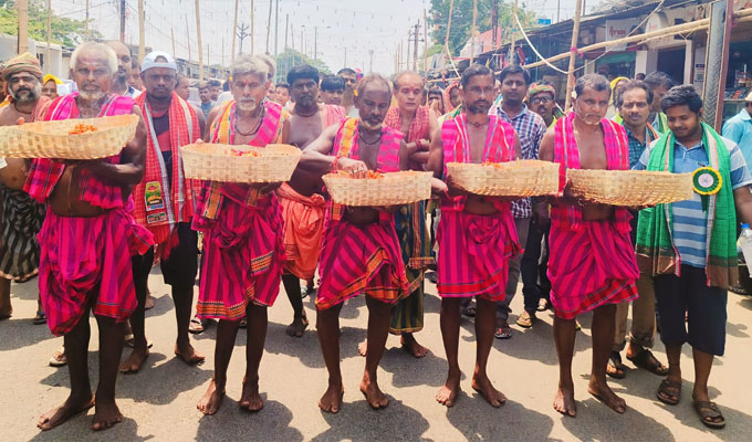 ପୁରୁଷୋତ୍ତମପୁର,୩୦।୫(ଡି.ଏନ୍.ଏ): ଗଞ୍ଜାମ ଜିଲା ପୁରୁଷୋତ୍ତମପୁର ସହରରେ ଦୀର୍ଘ ୨୮ ଦିନଧରି ଚାଲିଥିବା ଐତିହାସିକ କିମ୍ବଦନ୍ତୀ ପୂର୍ଣ୍ଣକନକା, କାଳୁଆ, ତାରାତାରିଣୀ, କାଳୀ ଓ ଫୁଲ ସୁନ୍ଦରୀ ଆଦି ପଞ୍ଚଠାକୁରାଣୀଙ୍କ ଯାତ୍ରା ମଙ୍ଗଳବାର ବିଳମ୍ବିତ ରାତିରେ ଶେଷ ହେବ । ଏଥିଲାଗି ସକାଳୁ ସମସ୍ତ ସାହିରେ ନାଚଗୀତର ଆସର ଜମିଛି। ମା’ ସନ୍ଧ୍ୟା ୭ଟାରୁ ଅସ୍ଥାୟୀ ପୀଠରୁ ବାହାରି ନରସିଂହ ଦାଶ ହାଇସ୍କୁଲ ପଡିଆରେ ପହଞ୍ଚି ବାଣଯାତ୍ରାରେ ଯୋଗଦେବା ପରେ ସହର ପରିକ୍ରମାକରି ବିଳମ୍ବିତ ରାତ୍ରରେ ନିଜ ନିଜର ମୁଖ୍ୟ ମନ୍ଦିରକୁ ଫେରିଯିବେ । ଯାତ୍ରା ଶେଷ ହେବା ପୂର୍ବରୁ ଅସ୍ଥାୟୀ ପୀଠରେ ପରମ୍ପରା ଅନୁସାରେ ବିଭିନ୍ନ ରୀତିନୀତି ପ୍ରକାରେ ମା’ଙ୍କୁ ପୂଜାର୍ଚ୍ଚନା କରାଯାଉଛି। ସକାଳେ ଅସ୍ଥାୟୀ ପୀଠରୁ ମା’ଙ୍କ ଫୁଲ ଚାଙ୍ଗୁଡିକୁ ବିରାଟ ପଟୁଆରରେ ନରସିଂହ ଦାସ ହାଇସ୍କୁଲ ପଡ଼ିଆକୁ ନିଆଯାଇଥିଲା। ସେଠାରେ ଆୟୋଜିତ ଅନ୍ନଯଜ୍ଞରେ ମା’ ଯୋଗଦେଇଥିଲେ। ମା’ଙ୍କୁ ପୂଜାର୍ଚ୍ଚନା କରାଯିବାସହ ଅନ୍ନ ଭୋଗ କରାଯାଇଥିଲା। ଏହା ପରେ ଭକ୍ତମାନେ ପ୍ରସାଦ ସେବନ କରିଥିଲେ। ସେପଟେ ଆଜି ଯାତ୍ରାର ଶେଷ ଦିନ ଯୋଗୁ ସହରର ସାହି ସାହିରେ ବିଭିନ୍ନ ପ୍ରକାରର ସାଂସ୍କୃତିକ କାର୍ଯ୍ୟକ୍ରମ ଆୟୋଜିତ ହୋଇଛି । ଏହା ସାଙ୍ଗକୁ ମିନା ବଜାର ଓ ଦୋଳିପଡ଼ିଛି। ଯାତ୍ରା କମିଟି ପକ୍ଷରୁ ବ୍ୟାପକ ବନ୍ଦୋବସ୍ତ କରାଯାଇଛି।
