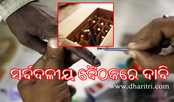 ଭୁବନେଶ୍ୱର,୭ା୧୧(ବ୍ୟୁରୋ): ଆସନ୍ତା ୨୦୨୨ରେ ତ୍ରିସ୍ତରୀୟ ପଞ୍ଚାୟତ ନିର୍ବାଚନ ଅନୁଷ୍ଠିତ ହେବ। ଏହି ନିର୍ବାଚନକୁ ଶୃଙ୍ଖଳିତ ଓ ତ୍ରୁଟିଶୂନ୍ୟ କରିବା ପାଇଁ ଶନିବାର ରାଜ୍ୟ ନିର୍ବାଚନ କମିଶନର ଆଦିତ୍ୟ ପ୍ରସାଦ ପାଢ଼ୀଙ୍କ ଅଧ୍ୟକ୍ଷତାରେ ସର୍ବଦଳୀୟ ବୈଠକ ଅନୁଷ୍ଠିତ ହୋଇଛି। ଚଳିତ ପଞ୍ଚାୟତ ନିର୍ବାଚନକୁ ମଦମୁକ୍ତ କରିବା ସହ ଭୋଟର ତାଲିକାକୁ ତ୍ରୁଟିଶୂନ୍ୟ କରିବାକୁ ବୈଠକରେ ରାଜନୈତିକ ଦଳଗୁଡ଼ିକ ଗୁରୁତ୍ୱ ଦେଇଛନ୍ତି। ନିର୍ବାଚନର ୭ ଦିନ ପୂର୍ବରୁ ମଦ ବିକ୍ରିକୁ ବନ୍ଦ କରିବାକୁ ପ୍ରସ୍ତାବ ଦିଆଯାଇଛି।