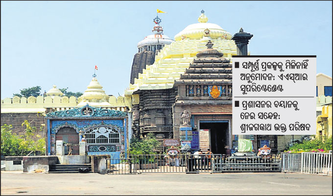 ପୁରୀ ଅଫିସ,୧୦।୩: ଶ୍ରୀମନ୍ଦିର ପରିକ୍ରମା ପ୍ରକଳ୍ପ ବିବାଦ ଜଟିଳ ହେବାରେ ଲାଗିଛି। ପ୍ରକଳ୍ପ କାର୍ଯ୍ୟ ପାଇଁ ଜାତୀୟ ସ୍ମାରକୀ ପ୍ରାଧିକରଣ (ଏନ୍ଏମ୍ଏ)ର ଅନୁମୋଦନ ରହିଛି ବୋଲି ପୁରୀ ଜିଲାପାଳ ସମର୍ଥ ବର୍ମା କହିଥିବାବେଳେ ଏନେଇ ଭାରତୀୟ ପ୍ରତ୍ନତତ୍ତ୍ବ ସର୍ବେକ୍ଷଣ ସଂସ୍ଥା (ଏଏସ୍ଆଇ) ଆପତ୍ତି ଉଠାଇଛି। ସମ୍ପୂର୍ଣ୍ଣ ପ୍ରକଳ୍ପକୁ ଅନୁମୋଦନ ନ ଥିବା ଏଏସ୍ଆଇ ସୁପରିଣ୍ଟେଣ୍ଡେଣ୍ଟ ବୁଧବାର ସ୍ପଷ୍ଟ କରିବା ପରେ ଜିଲା ପ୍ରଶାସନର ବୟାନକୁ ନେଇ ସନ୍ଦେହ ସୃଷ୍ଟି ହୋଇଛି।