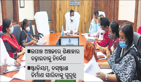 ଡ୍ରପ୍ ଆଉଟ୍ ପିଲାଙ୍କୁ ଚିହ୍ନଟ କରି ବିଦ୍ୟାଳୟ ମୁହଁା କରାଇବା, ଉପାନ୍ତ ଅଞ୍ଚଳରେ ସାକ୍ଷରତା ହାର ବଢ଼ାଇବା, ସ୍କୁଲକୁ ଆପ୍ରୋଚ ରୋଡ୍ ନିର୍ମାଣ, ଅଙ୍ଗନୱାଡି କେନ୍ଦ୍ରରେ ପୁଷ୍ଟିସାଧନ କାର୍ଯ୍ୟକ୍ରମ ତ୍ୱରାନ୍ବିତ କରିବା, ମାର୍ଚ୍ଚ ଶେଷ ସୁଦ୍ଧା ବିଦ୍ୟାଳୟ ରୂପାନ୍ତରଣ କାର୍ଯ୍ୟକ୍ରମ ସାରିବା, ସରକାରୀ ଶିକ୍ଷାନୁଷ୍ଠାନର ନିଜସ୍ବ ଜମିପଟ୍ଟା, ଲୋକଙ୍କୁ ଉନ୍ନତମାନର ସ୍ବାସ୍ଥ୍ୟସେବା ଯୋଗାଇ ଦେବା ଲାଗି ଜିଲାପାଳ ଗୁରୁତ୍ୱାରୋପ କରିଛନ୍ତି। ଏଥିସହ ଲଘୁଖଣିଜ ଉତ୍ସଗୁଡ଼ିକ ଉପରେ ତୀକ୍ଷ୍ଣ ନଜର ରଖିବା, ଚୋରା ଚାଲାଣକାରୀଙ୍କ ବିରୋଧରେ ଦୃଢ଼ କାର୍ଯ୍ୟାନୁଷ୍ଠାନ ଗ୍ରହଣ କରିବାକୁ ତହସିଲଦାରଙ୍କୁ ନିର୍ଦ୍ଦେଶ ଦିଆଯାଇଛି। ଗ୍ରାମ୍ୟ ପୋଖରୀ, ରାସ୍ତାର ଉନ୍ନତୀକରଣ, ରାଜସ୍ବ ଆଦାୟ ବୃଦ୍ଧି ପାଇଁ ଯତ୍ନବାନ ହେବାକୁ ଜିଲାପାଳ କହିଛନ୍ତି। ଏମ୍ଜିଏନ୍ଆର୍ଇଜିଏସ୍, ଆବାସ ଯୋଜନାରେ ଲକ୍ଷ୍ୟଧାର୍ଯ୍ୟ ପୂରଣ ଦିଗରେ ଆବଶ୍ୟକ ପଦକ୍ଷେପ ନେବାକୁ ପିଡି ଡିଆର୍ଡିଏ ସାଫଲ୍ୟ ମଣ୍ଡିତ ପ୍ରଧାନ ସମସ୍ତ ବ୍ଲକର ବିଡିଓମାନଙ୍କୁ ନିର୍ଦ୍ଦେଶ ଦେଇଛନ୍ତି। ଚଳିତ ମାସ ସୁଦ୍ଧା ୧୨ରୁ ୧୪ବର୍ଷର ୪୩ ହଜାର ଛାତ୍ରୀଛାତ୍ରଙ୍କ ଟିକାକରଣ କରାଯିବ ବୋଲି ସିଡିଏମ୍ଓ ଡା. ଅଶୋକ କୁମାର ଦାସ ସୂଚନା ଦେଇଛନ୍ତି। ବୈଠକରେ ଏଡିଏମ୍ଓ ଡା. ଜ୍ୟୋତିଷ ଚନ୍ଦ୍ର ମହାପାତ୍ର, ସ୍ବାସ୍ଥ୍ୟ ମିଶନ ପରିଚାଳିକା ସୋନାଲି ପ୍ରିୟଦର୍ଶିନୀ, ଆପତକାଳୀନ ଅଧିକାରୀ ସ୍ନିଗ୍ଧାଛାୟା ମହାପାତ୍ର, ଶିକ୍ଷାଧିକାରୀ ନିବେଦିତା ପାଣି, ଓସ୍ଡମା ଡିପିଓ ନିମାଇଁ ଚରଣ ଦାସ ପ୍ରମୁଖ ଉପସ୍ଥିତ ଥିଲେ।