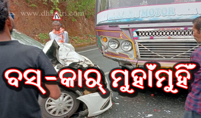ସୂଚନା ମୁତାବକ, ଶନିବାର ସକାଳେ କଳାହାଣ୍ଡି ଜିଲା ଆମପାଣି ଘାଟିର ବୁଲାଣିରେ ଏକ ଯାତ୍ରୀବାହୀ ଘରୋଇ ବସ୍( ଓଆର୍ ୧୦ ଇ୭୭୭୪) ଓ କାର୍ ଓ ୦୨ ଏପି ୩୭୫୨ ମଧ୍ୟରେ ମୁହାଁମୁହିଁ ଧକ୍କା ହୋଇଛି। ମୁଖୀଗୁଡ଼ାରୁ ଜୟପୁର ଯାଉଥିବା ଘରୋଇ ବସ୍ ଏସ୍ବିଏମ୍ଏସ୍ ଓ ନବରଙ୍ଗପୁର ପଟୁ କଳାହାଣ୍ଡି ଆସୁଥିବା ଏକ କାର୍ ମଧ୍ୟରେ ମୁହାଁମୁହିଁ ଦୁର୍ଘଟଣା ଘଟିଥିବା ଜଣାପଡ଼ିଛି। ଦୁର୍ଘଟଣା କାର୍ଟି କେସିଙ୍ଗା ଅଞ୍ଚଳର ବୋଲି ଜଣାପଡ଼ିଛି। ଆମପାଣି ପୋଲିସ ପହଞ୍ଚି ତଦନ୍ତ ଆରମ୍ଭ କରିଛି।