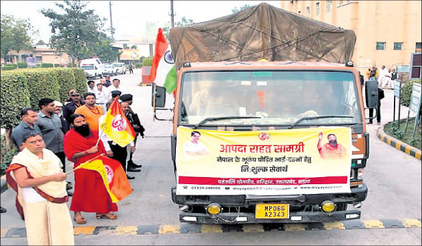 ଭୁବନେଶ୍ୱର,୧୧।୧୧: ଦେଶର ପ୍ରମୁଖ ଘରୋଇ ପ୍ରତିଷ୍ଠାନ ତଥା ପତଞ୍ଜଳି ଗ୍ରୁପ୍ର ସହଯୋଗୀ ସଂସ୍ଥା ପତଞ୍ଜଳି ଫୁଡ୍ସ ଲିମିଟେଡ୍ ପକ୍ଷରୁ ୮ଟି ରିଲିଫ୍ ଟ୍ରକ୍ ନେପାଳ ପଠାଯାଇଛି। ଉଲ୍ଲେଖଯୋଗ୍ୟ, ପତଞ୍ଜଳିର ପ୍ରତିଷ୍ଠାତା ଅଧ୍ୟକ୍ଷ ସ୍ବାମୀ ରାମଦେବ ଏବଂ ସାଧାରଣ ସମ୍ପାଦକ ଆଚାର୍ଯ୍ୟ ବାଲକ୍ରିଷ୍ଣାଙ୍କ ଅଧ୍ୟକ୍ଷତାରେ ନେପାଳ ଭୂକମ୍ପ ପ୍ରଭାବିତ ଲୋକଙ୍କୁ ପତଞ୍ଜଳି ପକ୍ଷରୁ ବ୍ୟାପକ ସହାୟତା ପଠାଯାଇଛି। ଏପରିକି ଉଭୟ ରାମଦେବ ଓ ବାଲକ୍ରିଷ୍ଣା ୮ଟି ଟ୍ରକ୍ ଜରିଆରେ ବହୁ ପରିମାଣର ରିଲିଫ ସାମଗ୍ରୀକୁ ପତାକା ଦେଖାଇ ରିଲିଫ ଟ୍ରକ୍କୁ ନେପାଳ ଅଭିମୁଖେ ପଠାଇଥିଲେ। ବିଶେଷକରି ନେପାଳରେ ଘଟିଯାଇଥିବା ଭୟାବହ ଭୂକମ୍ପରେ ବହୁଳ ଧନ ସମ୍ପତ୍ତି ସହ ଲୋକଙ୍କ ଜୀବନ କ୍ଷତିଗ୍ରସ୍ତ ହୋଇଛି। ଏ ସମ୍ପର୍କରେ ରାମଦେବ କହିଥିଲେ, ପ୍ରାକୃତିକ ବିପଦ ସମୟରେ ପତଞ୍ଜଳି ସର୍ବଦା ତା’ର ଉପସ୍ଥିତି ଓ ସହାୟତା ଯୋଗାଇଛି। ଏପରିକି ଭୂକମ୍ପରେ ପ୍ରଭାବିତ ପରିବାର ଲୋକ ଓ ପରିବାରବର୍ଗଙ୍କ ନିକଟରେ ରାମଦେବ ଠିଆ ହୋଇଛନ୍ତି ବୋଲି ସେ ବିସ୍ତୃତ ଭାବେ ମତପ୍ରକାଶ କରିଛନ୍ତି।
