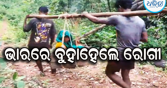 ଭବାନୀପାଟଣା,୨ା୧୦(ଉତ୍ତମ କୁମାର ଦାଶ): କଳାହାଣ୍ଡି ଜିଲା ଏମ୍.ରାମପୁର ବ୍ଲକର ଆଦିବାସୀ ଅଧ୍ୟୁଷିତ ତଥା ମାଓବାଦୀପ୍ରବଣ ଦୁର୍ଗମ ଲୁବେନଗଡ଼ ପଞ୍ଚାୟତର ପୁଇଝରୀ ଗାଁରେ ବୁଧବାର ଏକ ଅଭାବନୀୟ ଦୃଶ୍ୟ ସାମ୍ନାକୁ ଆସିଛି। ଏହି ଗାଁର ଇଟିଲି ମାଝୀ (୫୨)ନାମକ ଜଣେ ମହିଳା ଜ୍ୱରରେ ପୀଡିତ ଥାଇ ଅସୁସ୍ଥ ହୋଇପଡ଼ିବାରୁ ପରିବାର ଲୋକେ ତାଙ୍କୁ ଗାଁରୁ ୧୦ କିମି ବାଲିବାଜୁ ପର୍ଯ୍ୟନ୍ତ ଭାରରେ ବୋହିକି ଆଣିଥିଲେ। ସେଠାରୁ ଅଟୋ ଯୋଗେ ଉର୍ଲାଦାନୀ ସ୍ବାସ୍ଥ୍ୟକେନ୍ଦ୍ରକୁ ନେଇ ଚିକିତ୍ସା କରାଯାଇଥିବା ଜଣାପଡିଛି।