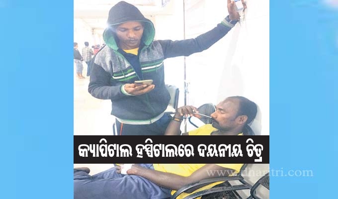 ଭୁବନେଶ୍ୱର, ୨୧।୧୧(ବ୍ୟୁରୋ) : ରାଜ୍ୟର ଅନ୍ୟତମ ପ୍ରମୁଖ ଚିକିତ୍ସାଳୟ କ୍ୟାପିଟାଲ ହସ୍ପିଟାଲରେ ସହଜରେ ମିଳୁନି ବେଡ୍। ରୋଗୀ ଘଣ୍ଟା ଘଣ୍ଟା ଧରି ଚେୟାର, ଷ୍ଟ୍ରେଚର ଓ ତଳେ ପଡି ରହୁଛନ୍ତି। ରୋଗୀଙ୍କ ସମ୍ପର୍କୀୟ ସାଲାଇନ୍ ଧରି ଠିଆ ହେଉଥିବା ଭଳି ଦୟନୀୟ ଚିତ୍ର ପ୍ରତିଦିନ ଦେଖିବାକୁ ମିଳୁଛି। ତେବେ ରବିବାର ଏହାକୁ ନେଇ ରୋଗୀ ଓ ସମ୍ପର୍କୀୟଙ୍କ ମଧ୍ୟରେ ତୀବ୍ର ଅସନ୍ତୋଷ ପ୍ରକାଶ ପାଇଥିଲା।