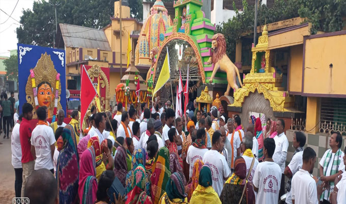 ଛତ୍ରପୁର,୧୨।୧୧(ଡି.ଏନ୍.ଏ.): ଗଞ୍ଜାମ ଜିଲା ଛତ୍ରପୁର ସହରର ତାଡେପଲ୍ଲୀ ସାହିସ୍ଥିତ ଜଗନ୍ନାଥ ମନ୍ଦିରଠାରୁ ତାରାତାରିଣୀଙ୍କ ପୀଠଯାଏ ଏକ ଆଧ୍ୟାତ୍ମିକ ପଦଯାତ୍ରାର ଆୟୋଜନ କରାଯାଇଛି। ୧୯୭୭ ମସିହାରେ ଏହି ମନ୍ଦିର ପକ୍ଷରୁ ପୁରୀ ଶ୍ରୀମନ୍ଦିର ପର୍ଯ୍ୟନ୍ତ ହୋଇଥିବା ଐତିହାସିକ ପତିତ ପାବନ ପଦଯାତ୍ରାର ସ୍ମରଣପୂର୍ବକ ଆୟୋଜିତ ଏହି ପଦଯାତ୍ରାରେ ଶତାଧିକ ପୁରୁଷ ଓ ମହିଳା ଭକ୍ତ ସାମିଲ ହୋଇଛନ୍ତି। ପ୍ରତ୍ୟୁଷରୁ ଛତ୍ରପୁରର ଜଗନ୍ନାଥ ମନ୍ଦିରଠାରେ ପାରମ୍ପରିକ ପୂଜାର୍ଚ୍ଚନା ପରେ ଜଗନ୍ନାଥଙ୍କ ମୂର୍ତ୍ତି ଥିବା ଏକ ରଥକୁ ଭକ୍ତମାନେ ଟାଣି ନେଇଥିଲେ। ଚଳିତ ବର୍ଷ ୫ମ ଥର ପାଇଁ ଏଭଳି ଯାତ୍ରାର ଆୟୋଜନ କରାଯାଇଥିବା ବେଳେ ପୂର୍ବରୁ ୧୯୮୦ରେ ପୁରୀ, ୧୯୮୫ରେ କଣ୍ଟିଲୋ, ୨୦୧୯ରେ ପଞ୍ଚମାକୁ ଏଭଳି ଯାତ୍ରାର ଆୟୋଜନ ହୋଇଥିଲା। ମନ୍ଦିର ପରିଚାଳକ ଜଗବନ୍ଧୁ ପାଣିଗ୍ରାହୀ, ଆଦିକନ୍ଦ ପାଣିଗ୍ରାହୀଙ୍କ ସମେତ ସୁଧୀର ରଥ, ପ୍ରଭାକର ରାଓ, ବିଜୟ ମହାରଣା ପ୍ରମୁଖ କାର୍ଯ୍ୟକ୍ରମ ପରିଚାଳନା କରିଥିଲେ।