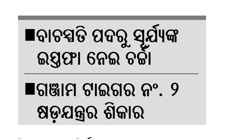 ବ୍ରହ୍ମପୁର ଅଫିସ,୯ା୬: ଗଞ୍ଜାମ ଟାଇଗର ନଂ. ୨ ସୂର୍ଯ୍ୟ ନାରାୟଣ ପାତ୍ର ଶାସକ ଦଳ ରାଜନୀତିରେ ଷଡ଼ଯନ୍ତ୍ରର ଶିକାର ହୋଇଥିବା ବିଭିନ୍ନ ମହଲ ଆଲୋଚନା କରୁଛନ୍ତି। ସୂଚନାଯୋଗ୍ୟ ଏହି ଜିଲାର ବରିଷ୍ଠ ରାଜନେତା ସ୍ବର୍ଗତ ରାମକୃଷ୍ଣ ପଟ୍ଟନାୟକଙ୍କୁ ଗଞ୍ଜାମ ଟାଇଗର କୁହାଯାଉଥିଲା। ସେ ବହୁବାର କୋଦଳା ନିର୍ବାଚନମଣ୍ଡଳୀରୁ ବିଧାୟକ ହେବା ସହ ବିଜୁ ବାବୁଙ୍କ ଜନତା ଦଳ ଏବଂ ନବୀନ ପଟ୍ଟନାୟକଙ୍କ ସରକାରରେ କ୍ୟାବିନେଟ ମନ୍ତ୍ରୀ ହୋଇ ଅର୍ଥ ଭଳି ଗୁରୁତ୍ୱପୂର୍ଣ୍ଣ ବିଭାଗ ସମ୍ଭାଳିଥିଲେ। ୨୦୦୨ରୁ ସେ ବିଜେଡି ଛାଡ଼ିଥିଲେ। ପ୍ରଥମେ କଂଗ୍ରେସ ଓ ପରେ ଭାଜପାରେ ସାମିଲ ହୋଇଥିଲେ। ଦଳ ବଦଳ ପରେ ଦୁଇ ଦଶନ୍ଧି ହେବ କ୍ଷମତାଚ୍ୟୁତ ହେବାରୁ ତାଙ୍କ ଗର୍ଜନ ଶୁଭିନଥିଲା। ପରବର୍ତ୍ତୀ ପର୍ଯ୍ୟାୟରେ ସୂର୍ଯ୍ୟଙ୍କ ରାଜନୈତିକ ଦବ୍ଦବା ଜିଲାରେ ଆରମ୍ଭ ହୋଇଥିଲା। ତେଣୁ ତାଙ୍କୁ ଗଞ୍ଜାମ ଟାଇଗର ନଂ. ୨ ଭାବେ ପରିଚିତ କରିଥିଲା।