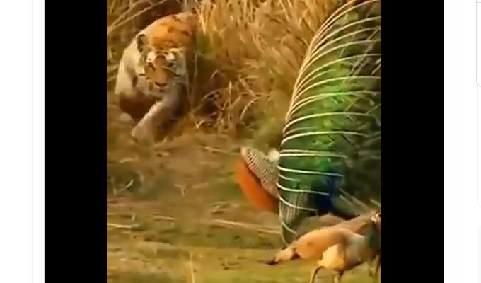 ପ୍ରତ୍ୟେକ ଦିନ ସୋସିଆଲ ମିଡିଆରେ କିଛି ନା କିଛି ନୂତନ ଭିଡିଓ ଏବଂ ଫଟୋ ଭାଇରାଲ ହେଉଛି। ସେଥିରୁ କେତେକ ଭିଡିଓ ଏବଂ ଫଟୋ ହସର ଖୋରାକ ଯୋଗାଉଥିବା ବେଳେ କେତେକ ଭାବପ୍ରବଣ କରିଦିଏ। ସେହିଭଳି ଟୁଇଟରରେ ଏବେ ଏକ ଭିଡିଓ ଭାଇରାଲ ହେବାରେ ଲାଗିଛି। ଏଥିରେ ଏକ ବାଘକୁ ଦେଖିବାକୁ ମିଳୁଛି। ବାଘଟି ଶୋଇଥିବା ବେଳେ ମୟୂର ତା ଆଗରେ ପର ହଲାଇ ନାଚୁଛି। ଆଉ ବାଘଟି ଦୌଡ଼ି ଆସିବାରୁ ସେ ତାକୁ ଚକମା ଦେଇ ଉଡ଼ିଯାଉଛି। ଭିଡିଓକୁ ଭାରତୀୟ ବନସେବା ଅଧିକାରୀ ସୁଶାନ୍ତ ନନ୍ଦ ତାଙ୍କ ଟୁଇଟରରେ ଶେୟାର କରିଛନ୍ତି। ଭିଡିଓଟି ଭାଇରାଲ ହେବାରେ ଲାଗିଛି।