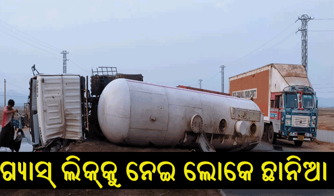 ରାସ୍ତା ମଝିରେ ଓଲଟିଲା ଆମୋନିଆ ଗ୍ୟାସ ବୋଝେଇ ଟ୍ରକ୍‌: ଲିକ୍‌ ଯୋଗୁ ସ୍ଥାନୀୟ ଲୋକେ ଭୟଭୀତ