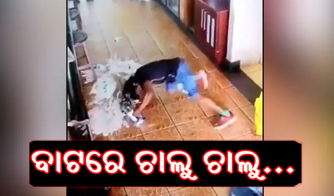 ଭାଇରାଲ ହୋଇଥିବା ଭିଡିଓରେ ଜଣେ ମହିଳା ଆଗରେ ଚାଲି ଚାଲି ଯାଉଛନ୍ତି। ଆଉ ତାଙ୍କ ପଛରେ ଜଣେ ବ୍ୟକ୍ତି କିଛି ଜିନିଷ ହାତରେ ଧରି ଯାଉଛନ୍ତି। ଏହି ସମୟରେ ତାଙ୍କ ହାତରୁ କିଛି ଖସି ପଡ଼ି ତାଙ୍କ ପାଦରେ ପଡ଼ୁଛି। ପରେ ତାଙ୍କ ଗୋଡ଼ ଖସିଯାଉଛି। ସେ ତଳେ ଜୋର୍ରେ ପଡ଼ିଯାଉଛନ୍ତି। ଏହି ସମୟରେ ସେ ହାତଭରା ଦେଇ ଉଠିପଡୁଛନ୍ତି। ଭିଡିଓ ଦେଖି ସମସ୍ତେ କହୁଛନ୍ତି ଭଲ ହେଲା ତାଙ୍କ ମୁଣ୍ଡରେ ଆଘାତ ଲାଗିନି। ନଚେତ୍ ବହୁତ ଅସୁବିଧା ହୋଇଥାନ୍ତା।
