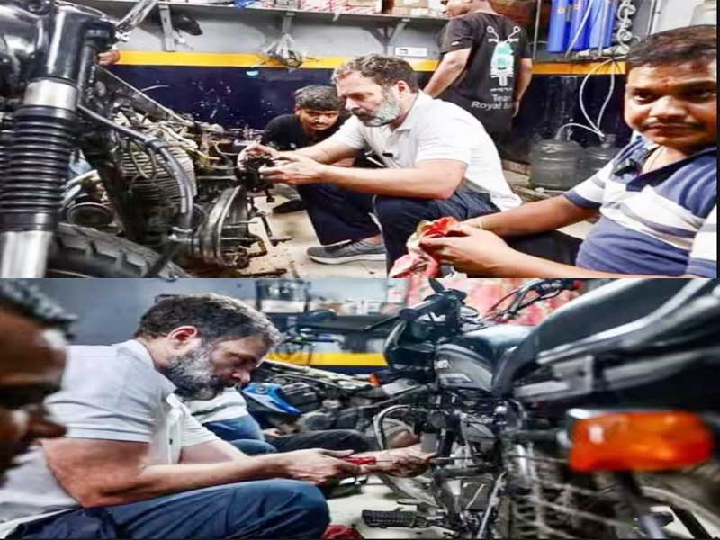 ବାଇକ ମେକାନିକଙ୍କ ସହିତ କାମ କରୁଥିବା ରାହୁଲଙ୍କ ଫଟୋ ସୋସିଆଲ ମିଡ଼ିଆରେ ଭାଇରାଲ…