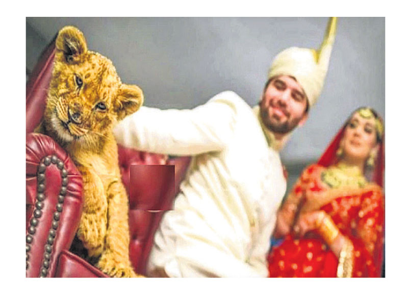 ବିବାହବେଳେ ବରକନ୍ୟା ଏକ ସିଂହ ଛୁଆ ସହ ଫଟୋଶୁଟ୍ କରିଛନ୍ତି। ସେହି ସିଂହ ଛୁଆକୁ ଡ୍ରଗ୍ସ ଦିଆଯାଇଥିବା ଜଣାପଡିଛି। ଘଟଣା ପାକିସ୍ତାନରେ ଦେଖିବାକୁ ମିଳିଥିବାବେଳେ ଫଟୋଗୁଡ଼ିକ ଏବେ ସୋସିଆଲ ମିଡିଆରେ ଭାଇରାଲ ହୋଇଛି। ସିଂହଟି ବରକନ୍ୟାଙ୍କ ସହ ବସିଥିବା ଦେଖାଯାଇଛି। ଏ ନେଇ ପଞ୍ଜାବର ଓ୍ବାଇଲ୍ଡଲାଇଫ୍ ଡିପାର୍ଟମେଣ୍ଟ ପକ୍ଷରୁ ନୋଟିସ ଜାରିକରାଯିବା ସହ ସମ୍ପୃକ୍ତ ବିବାହ ଯୋଡିଙ୍କୁ ଖୋଜା ଚାଲିଛି। ବାହାଘରକୁ ନିଆରା କରିବା ସହ ପ୍ରସିଦ୍ଧ ହେବାକୁ ଉକ୍ତ ଦମ୍ପତି ଏଭଳି ଢଙ୍ଗରେ ସିଂହ ଛୁଆ ସହ ଫଟୋ ଉଠାଇଥିବା କୁହାଯାଉଛି।