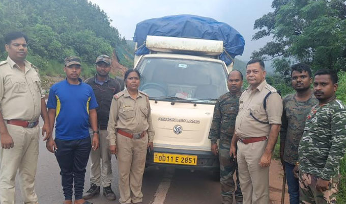 କେନ୍ଦୁଝର,୨୨।୮(ନରେଶ ଚନ୍ଦ୍ର ପଟ୍ଟନାୟକ): କେନ୍ଦୁଝର ଭୂୟାଁ ଓ ଜୁଆଙ୍ଗ ପିଢ ରେଞ୍ଜ ଅନ୍ତର୍ଗତ ସାନଘାଗରା ନିକଟରୁ ଏନଏଚ୍ ୪୯ରୁ ବନ ବିଭାଗ ଏକ ଚୋରା କେନ୍ଦୁପତ୍ର ବୋଝେଇ ପିକଅପ୍ ଭ୍ୟାନ ଜବତ କରିଛି। ସୋମବାର ରାତିରେ ପାଟ୍ରୋଲିଙ୍ଗ ସମୟରେ ଧରାପଡ଼ିଥିବା ବେଳେ ଦୁଇ ଜଣଙ୍କୁ ଗିରଫ କରାଯାଇଥିବା ରେଞ୍ଜ ଅଧିକାରୀ ବିଜୟ କୁମାର ମହାନ୍ତ କହିଛନ୍ତି। ଏହି କେନ୍ଦୁପତ୍ର ଆଠ ମଲ୍ଲିକ ଅଞ୍ଚଳରୁ କଲିକତା ଯାଉଥିଲା ବୋଲି ପ୍ରାଥମିକ ତଦନ୍ତରୁ ଜଣା ପଡ଼ିଛି।