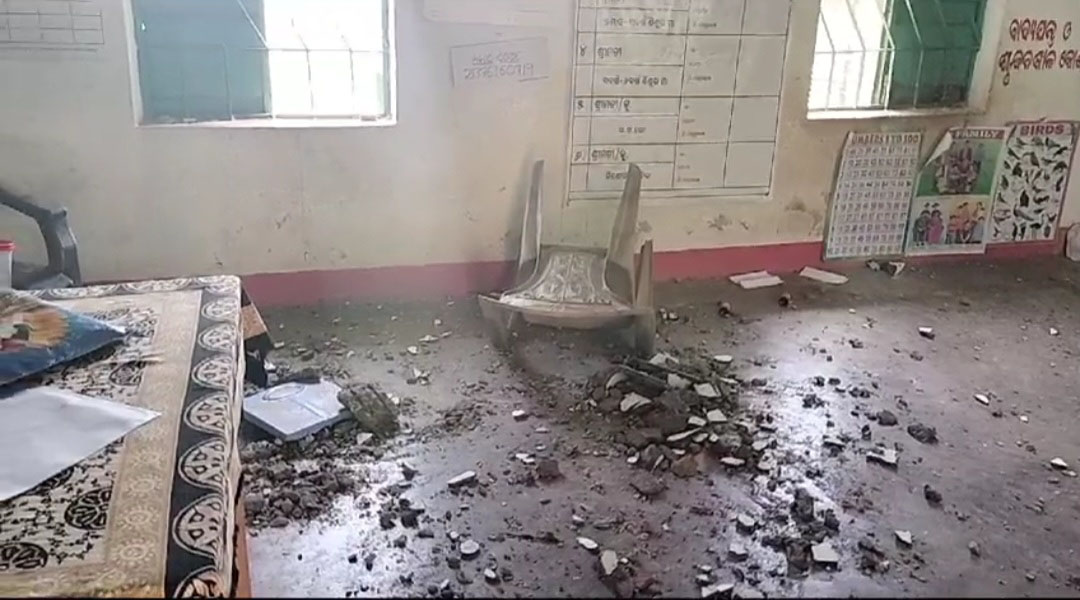ଅଙ୍ଗନବାଡି କେନ୍ଦ୍ରର ଛାତରୁ ଖସିଲା ପ୍ଲାଷ୍ଟର ଓ଼ କଂକ୍ରିଟ ଚିପ୍ସ, କେନ୍ଦ୍ରର କର୍ମଚାରୀ ଆହତ