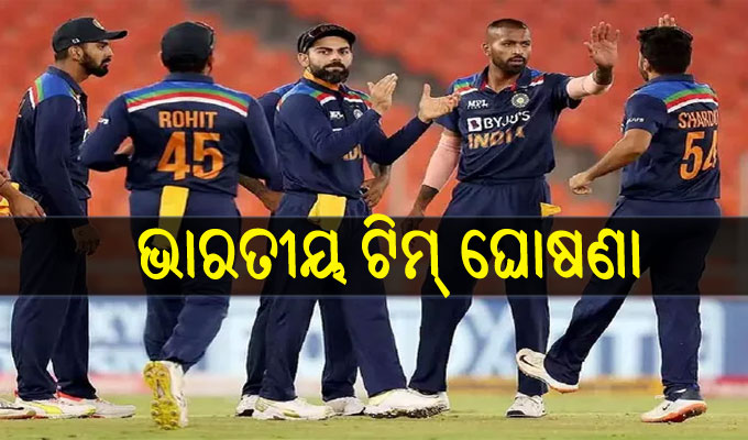 ବିରାଟ କୋହଲି(ଅଧିନାୟକ), ରୋହିତ ଶର୍ମା(ଉପଅଧିନାୟକ), କେଏଲ୍ ରାହୁଲ, ଶିଖର ଧାଓ୍ବନ୍/ପୃଥ୍ବୀ ଶ’, ସୂର୍ଯ୍ୟକୁମାର ଯାଦବ, ଶ୍ରେୟସ ଆୟାର, ଋଷଭ ପନ୍ତ, ରବିନ୍ଦ୍ର ଜାଡେଜା, ୟୁଜବେନ୍ଦ୍ର ଚହଲ, ଜସପ୍ରିତ ବୁମ୍ରା, ଦୀପକ ଚାହର, ହାର୍ଦ୍ଦିକ ପାଣ୍ଡ୍ୟା, ଶାର୍ଦ୍ଦୁଳ ଠାକୁର, ଟି ନଟରାଜନ, ଭୁବନେଶ୍ୱର କୁମାର।