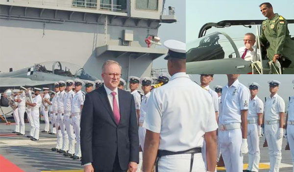 ନୂଆଦିଲ୍ଲୀ,୯।୩: ଅଷ୍ଟ୍ରେଲିଆ ପ୍ରଧାନମନ୍ତ୍ରୀ ଆନ୍ଥୋନୀ ଆଲବାନିଙ୍କୁ ଭାରତୀୟ ନୌସେନା ପକ୍ଷରୁ ଆଇଏନ୍ଏସ୍ ବିକ୍ରାନ୍ତ ଉପରେ ଗାର୍ଡ ଅଫ୍ ଅନର ପ୍ରଦାନ କରାଯାଇଛି। ଏଥିସହ ସେ ଆଇଏନ୍ଏସ୍ ବିକ୍ରାନ୍ତର କକ୍ପିଟ୍ରେ ବସିଥିବା ଦେଖିବାକୁ ମିଳିଛି। ପ୍ରଧାନମନ୍ତ୍ରୀ ନରେନ୍ଦ୍ର ମୋଦିଙ୍କ ନିମନ୍ତ୍ରଣକ୍ରମେ ନବନିଯୁକ୍ତ, ଭାରତୀୟ ଡିଜାଇନ୍ ଓ ଭାରତରେ ନିର୍ମିତ ଆଇଏନ୍ଏସ୍ ବିକ୍ରାନ୍ତରେ ଆଜି ଆସି ମୁଁ ଗର୍ବିତ ଅନୁଭବ କରୁଛି ବୋଲି ଆଲବାନି କହିଛନ୍ତି। ମୋର ଏହି ଗସ୍ତ ଭାରତ-ପ୍ରଶାନ୍ତ ମହାସାଗରରେ ତଥା ଅଷ୍ଟ୍ରେଲିଆର ଦୃଷ୍ଟିକୋଣରେ ଭାରତକୁ ସ୍ଥାନିତ କରିବା ମୋ ସରକାରଙ୍କ ପ୍ରତିବଦ୍ଧତାକୁ ଦର୍ଶାଉଛି ବୋଲି ଅଷ୍ଟ୍ରେଲିଆ ପ୍ରଧାନମନ୍ତ୍ରୀ କହିଛନ୍ତି। ସୂଚନାଯୋଗ୍ୟ, ଭାରତ ଏବଂ ଅଷ୍ଟ୍ରେଲିଆ ମଧ୍ୟରେ ଚତୁର୍ଥ ତଥା ଅନ୍ତିମ କ୍ରିକେଟ ଟେଷ୍ଟ ମ୍ୟାଚ ଆରମ୍ଭ ପୂର୍ବରୁ ଗୁରୁବାର ସକାଳେ ପ୍ରଧାନମନ୍ତ୍ରୀ ନରେନ୍ଦ୍ର ମୋଦି ଏବଂ ତାଙ୍କ ଅଷ୍ଟ୍ରେଲୀୟ ପ୍ରତିପକ୍ଷ ଆନ୍ଥୋନୀ ଆଲବାନି ଅହମ୍ମଦାବାଦର ନରେନ୍ଦ୍ର ମୋଦି ଷ୍ଟାଡିୟମରେ ପହଞ୍ଚିଥିଲେ।