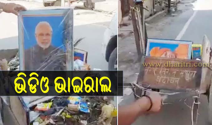 ମଥୁରା,୧୮।୭: ଉତ୍ତରପ୍ରଦେଶ ମଥୁରାର ଜଣେ ସଫେଇ କର୍ମଚାରୀ ପ୍ରଧାନମନ୍ତ୍ରୀ ନରେନ୍ଦ୍ର ମୋଦି ଏବଂ ମୁଖ୍ୟମନ୍ତ୍ରୀ ଯୋଗୀ ଆଦିତ୍ୟନାଥଙ୍କ ଫଟୋ ଅଳିଆ ଗାଡିରେ ନେବା ମହଙ୍ଗା ପଡିଛି। ଶେଷରେ ତାଙ୍କ ଚାକିରି ଯାଇଛି।