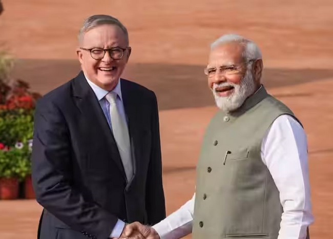 ନୂଆଦିଲ୍ଲୀ,୧୦ ।୩: ଅଷ୍ଟ୍ରେଲିଆ ପ୍ରଧାନମନ୍ତ୍ରୀ ଏନ୍ଥୋନି ଅଲ୍ମନିଜ ଏବେ ଭାରତ ଗସ୍ତରେ ଅଛନ୍ତି, ଏହି ଗସ୍ତର ଉଦ୍ଦେଶ୍ୟ ଦୁଇ ଦେଶ ମଧ୍ୟରେ ବ୍ୟବସାୟ, ନିବେଶ ଓ ପ୍ରତିରକ୍ଷା ସମ୍ପର୍କକୁ ମଜଭୁତ କରିବା । ଶୁକ୍ରବାର ନୂଆଦିଲ୍ଲୀର ହାଇଦ୍ରାବାଦ ହାଉସରେ ମିଳିତ ପ୍ରେସ ମିଟରେ ପ୍ରଧାନମନ୍ତ୍ରୀ ନରେନ୍ଦ୍ର ମୋଦି ଓ ଅଷ୍ଟ୍ରେଲିଆ ପ୍ରଧାନମନ୍ତ୍ରୀ ଅଲ୍ୱନିଜଙ୍କୁ ଭାରତ ଭିଜିଟ ଉପରେ ସ୍ୱାଗତ କରାଯାଇଛି ।