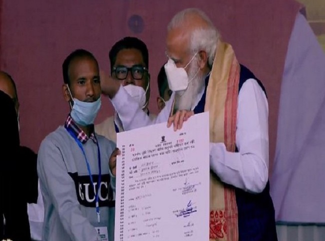 ଆସାମ ଗସ୍ତରେ ମୋଦି: ଭୂମିହୀନଙ୍କୁ ବାଣ୍ଟିଲେ ଜମି ପଟ୍ଟା