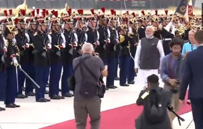 ପ୍ୟାରିସ,୧୩।୭: ପ୍ରଧାନମନ୍ତ୍ରୀ ନରେନ୍ଦ୍ର ମୋଦି ୩ ଦିନିଆ ବିଦେଶ ଗସ୍ତ କାର୍ଯ୍ୟକ୍ରମରେ ଗୁରୁବାର ପ୍ୟାରିସ ବିମାନ ବନ୍ଦରରେ ପହଞ୍ଚିଛନ୍ତି। ସେଠାରେ ତାଙ୍କୁ ଭବ୍ୟ ସ୍ବାଗତ କରାଯାଇଛି। ଫ୍ରାନ୍ସର ପ୍ରଧାନମନ୍ତ୍ରୀ ଏଲିଜାବେଥ ବୋର୍ନ ତାଙ୍କୁ ସ୍ବାଗତ କରିଥିଲେ। ମୋଦିଙ୍କୁ ସେଠାରେ ଗାର୍ଡ ଅଫ ଅନର ବି ଦିଆଯାଇଛି।