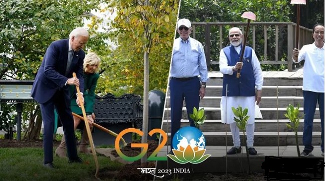 ପ୍ରଧାନମନ୍ତ୍ରୀ ମୋଦି ନିଜେ ଜି -୨୦ ଦେଶର ନେତାଙ୍କ ସହ ଶାନ୍ତି ବାର୍ତ୍ତା ଦେବା ପାଇଁ ସମ୍ମିଳନୀର ଦ୍ୱିତୀୟ ଅଧିବେଶନରେ ରାଜଘାଟକୁ ଯାଇ ଚାରା ରୋପଣ କରିବେ। ସେପ୍ଟେମ୍ବର ୧୦ରେ ଅନୁଷ୍ଠିତ ହେବାକୁ ଥିବା ଏହି କାର୍ଯ୍ୟକ୍ରମ ମଧ୍ୟ ସ୍ବତନ୍ତ୍ର କାରଣ ଏହି ଚାରାଗୁଡିକ ଜି-୨୦ ଦେଶରୁ କେବଳ ସେମାନଙ୍କ ନେତାଙ୍କ ଦ୍ୱାରା ଅଣାଯିବ। ତେବେ କେତେକ ଚାରା କେବଳ ଭାରତରୁ ଆସିବ। ଏହି ଚାରାଗୁଡିକର ଅନେକ ପ୍ରକାର ଅଛି। ଆମେରିକାର ରାଷ୍ଟ୍ରପତି ଜୋ ବାଇଡେନ କ୍ୱିନ୍ସ କ୍ରେପ-ମର୍ଟଲ, ବ୍ରିଟେନର ପ୍ରଧାନମନ୍ତ୍ରୀ କାନ୍ଦୁଥିବା ୱିଲି (ସାଲିକ୍ସ ବେବି-ଲୋନିକା) ଏବଂ କାନାଡାର ପ୍ରଧାନମନ୍ତ୍ରୀ ଅର୍ଜୁନ (ଟର୍ମିନାଲିଆ ଆର୍-ଜୁନା) ଲଗାଇବେ।