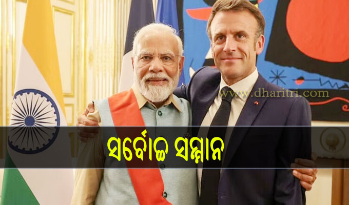 ପ୍ୟାରିସ୍,୧୪।୭: ପ୍ରଧାନମନ୍ତ୍ରୀ ନରେନ୍ଦ୍ର ମୋଦିଙ୍କୁ ଫ୍ରାନ୍ସର ସର୍ବୋଚ୍ଚ ସମ୍ମାନ ଗ୍ରାଣ୍ଡ କ୍ରସ ଅଫ ଲେଜିଅନ ସମ୍ମାନ ମିଳିଛି। ଫ୍ରାନ୍ସର ରାଷ୍ଟ୍ରପତି ଇମାନ୍ବେଲ ମାକ୍ରଁ ମୋଦିଙ୍କୁ ପ୍ରଦାନ କରାଯାଇଛି। ପ୍ରଧାନମନ୍ତ୍ରୀ ଭାରତର ଲୋକଙ୍କ ତରଫରୁ ରାଷ୍ଟ୍ରପତି ମାକ୍ରଁଙ୍କୁ ଧନ୍ୟବାଦ ଜଣାଇଛନ୍ତି।