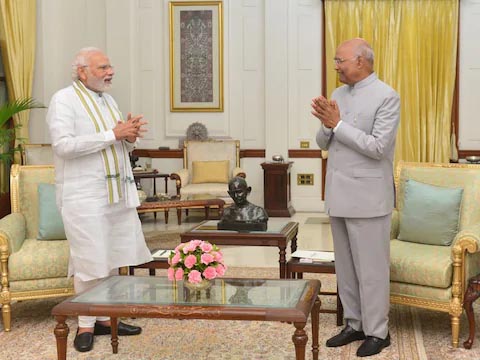 ନୂଆଦିଲ୍ଲୀ,୧୯।୬: ପ୍ରଧାନମନ୍ତ୍ରୀ ନରେନ୍ଦ୍ର ମୋଦି ରବିବାର ରାଷ୍ଟ୍ରପତି ଭବନରେ ରାଷ୍ଟ୍ରପତି ରାମ ନାଥ କୋବିନ୍ଦଙ୍କୁ ଭେଟିଛନ୍ତି। ଏହା ଏକ ସୌଜନ୍ୟମୂଳକ ସାକ୍ଷାତ ବୋଲି ଜଣାପଡିଛି॥ ରାଷ୍ଟ୍ରପତିଙ୍କ ଟୁଇଟ୍ ହ୍ୟାଣ୍ଡେଲରୁ ଦୁଇଟି ସାକ୍ଷାତ ସମୟର ୨ଟି ଫଟୋ ପ୍ରକାଶ ପାଇଛି। କିନ୍ତୁ ଏହି ବୈଠକ କେତେ ସମୟ ପର୍ଯ୍ୟନ୍ତ ଚାଲିଥିଲା ଏବଂ କେଉଁ ପ୍ରସଙ୍ଗ ଉପରେ ଆଲୋଚନା କରାଯାଇଥିଲା ସେ ସମ୍ପର୍କରେ କୌଣସି ସୂଚନା ଦିଆଯାଇ ନାହିଁ।