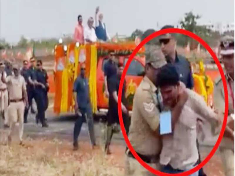 ମେ ମାସରେ କର୍ନାଟକରେ ବିଧାନସଭା ନିବ;ାଚନ ଅନୁଷ୍ଠିତ ହେବ। ଏହାକୁ ଦୃଷ୍ଟିରେ ରଖି ଶନିବାର ଭାଜପା ପକ୍ଷରୁ ଦାଭାନଗେରେଠାରେ ବିଜୟ ସଙ୍କଳ୍ପ ଯାତ୍ରା ଆରମ୍ଭ କରିଛି। ଭାଜପା ଅଭିଯାନର ଏକ ଅଂଶ ଭାବରେ ପ୍ରଧାନମନ୍ତ୍ରୀ ମୋଦି ଏକ ବିରାଟ ସାଧାରଣ ସଭାରେ ସମ୍ବୋଧିତ କରିଥିଲେ। କିନ୍ତୁ ଏହାପୂର୍ବରୁ ସେ ଏକ ରୋଡ ଶୋ କରିଥିଲେ। ଏହି ରୋଡ ଶୋ ସମୟରେ ଜଣେ ଯୁବକ ହଠାତ ସୁରକ୍ଷା କର୍ଡନ ଭାଙ୍ଗି ପିଏମ ମୋଦିଙ୍କ କାର ଆଡକୁ ମାଡ଼ି ଆସିଥିଲେ। ଘଟଣାସ୍ଥଳରେ ଉପସ୍ଥିତ ଥିବା ପୋଲିସ କର୍ମଚାରୀମାନେ ତାଙ୍କୁ ତୁରନ୍ତ ଗିରଫ କରିଥିଲେ।