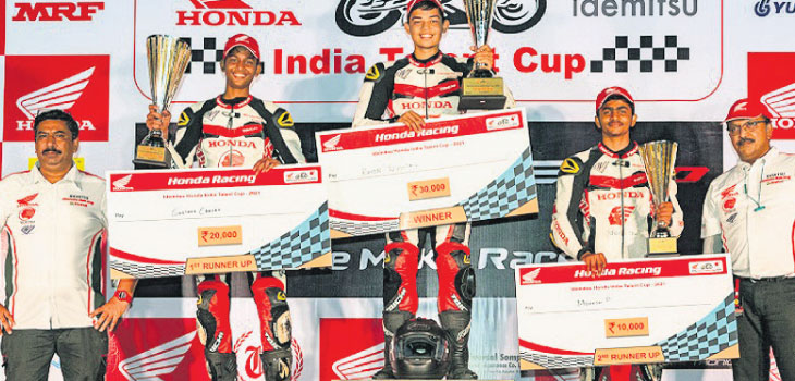 ନୂଆଦିଲ୍ଲୀ,୮।୨ ଚେନ୍ନାଇର ‘ମାଡ୍ରାସ ମୋଟର ରେସ୍ ଟ୍ରାକ୍’ରେ ଚାଲିଥିବା ଭାରତୀୟ ଜାତୀୟ ମୋଟରସାଇକେଲ୍ ରେସିଂ ଚାମ୍ପିୟନ୍ଶିପ୍ରେ ଆଇଡେମିସୁ ହୋଣ୍ଡା ଏସ୍କେ ୬୯ ରେସିଂ ଟିମ୍ର ରାଜୀବ ସେତୁ ଚମତ୍କାର ପ୍ରଦର୍ଶନ କରିଛନ୍ତି। ସେହିଭଳି ଆଇଡେମିସୁ ହୋଣ୍ଡା ଇଣ୍ଡିଆ ଟ୍ୟାଲେଣ୍ଟ କପ୍ରେ ନୂଆ ଚାଳକମାନେ ମଧ୍ୟ ଘରକୁ ଚାମ୍ପିୟନ୍ଶିପ୍ ଟ୍ରଫି ଆଣିଛନ୍ତି। ଜାତୀୟ ଚାମ୍ପିୟନ୍ଶିପ୍ର ୨୦୨୧ ସିଜନ୍ରେ ପ୍ରୋ ଷ୍ଟକ୍ ୧୬୫ ସିସି ବର୍ଗରେ ଆଇଡେମିସୁ ହୋଣ୍ଡା ଏସ୍କେ ୬୯ ରେସିଂ ଟିମ୍ର ଚାଳକମାନେ ମୋଟ ୯ଟି ପୋଡିୟମ୍ ହାସଲ କରିଛନ୍ତି। ସଦ୍ୟତମ ରେସ୍ରେ ତୃତୀୟ ସ୍ଥାନରେ ରହିଥିବା ରାଜୀବ ସେତୁ ଜାତୀୟ ଚାମ୍ପିୟନ୍ଶିପ୍ର ପ୍ରୋଷ୍ଟକ୍ ୧୬୫ ସିସି ବର୍ଗରେ ତୃତୀୟ ସ୍ଥାନ ଦଖଲ କରିଛନ୍ତି। ମୋଟ ୩ ମେଶିନ୍ର ବାସ୍ତବ ଶକ୍ତିକୁ ପ୍ରଦର୍ଶନ କରି ଆଇଡେମିସୁ ହୋଣ୍ଡା ଇଣ୍ଡିଆ ଟ୍ୟାଲେଣ୍ଟ୍ କପ୍ର ଏନ୍ଏସ୍ଏଫ୍ ୨୫୦ଆର୍ ଓପନ୍ କ୍ଲାସ୍ରେ ୯ ଜଣ ପରବର୍ତ୍ତୀ ପିଢ଼ିର ଚାଳକ ରେସ୍ ଟ୍ରାକ୍ରେ ନିଜର ଶ୍ରେଷ୍ଠ ପ୍ରଦର୍ଶନ କରିବାରେ କୌଣସି ଉଦ୍ୟମକୁ ହାତଛଡ଼ା କରିନାହାନ୍ତି। ଏ ସମ୍ପର୍କରେ ହୋଣ୍ଡା ମୋଟରସାଇକେଲ୍ ଆଣ୍ଡ୍ ସ୍କୁଟର୍ ଇଣ୍ଡିଆ ପ୍ରାଇଭେଟ୍ ଲିମିଟେଡ୍ର ବରିଷ୍ଠ ଉପସଭାପତି (ବ୍ରାଣ୍ଡ୍ ଆଣ୍ଡ୍ କମ୍ୟୁନିକେଶନ) ପ୍ରଭୁ ନାଗରାଜ୍ କହିଛନ୍ତି ଯେ, ଆମ ଚାଳକ ରାଜୀବ ସେତୁଙ୍କ ପ୍ରଶଂସାଯୋଗ୍ୟ ପ୍ରଦର୍ଶନକୁ ନେଇ ମୁଁ ବହୁତ ଖୁସି, ଯିଏ ଆମର ଲକ୍ଷ୍ୟ ହାସଲ କରିବା ଏବଂ ଜାତୀୟ ଚାମ୍ପିୟନ୍ଶିପ୍ରେ ତୃତୀୟ ସ୍ଥାନ ହାସଲ କରିବା ରାସ୍ତାରେ ରଖିଥଲେ। କେଭିନ୍ କ୍ୱିଂଟାଲ୍ ଓ ପ୍ରକାଶ କାମାତ୍ଙ୍କୁ ଦେଖି ମୁଁ ବହୁତ ଖୁସି, ଯେଉଁମାନେ ବାସ୍ତବ ପ୍ରତିଭା ପ୍ରଦର୍ଶନ କରି ଆଇଡେମିସୁ ହୋଣ୍ଡା ଇଣ୍ଡିଆ ଟ୍ୟାଲେଣ୍ଟ୍ କପ୍ର ଏନ୍ଏସ୍ଏଫ୍ ୨୫୦ଆର୍ ଓ ସିବିଆର୍୧୫୦ଆର୍ ବର୍ଗରେ ବିଜୟୀ ହୋଇଛନ୍ତି।