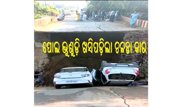 ଭବାନୀପାଟଣା,୩୦।୧୦(ସ୍ବ.ପ୍ର.): ପୋଲ ଭୁଶୁଡି ପଡିବାରୁ ୨ ଚଳନ୍ତା କାର୍ ବ୍ରିଜ୍ ତଳକୁ ଖସିପଡିଛି। ଏପରି ଏକ ଅଭାବନୀୟ ଘଟଣା ଘଟିଛି କଳାହାଣ୍ଡି ଜିଲା ଭବାନୀପାଟଣା ସହର ନିକଟ ଭାଗୀରଥି ପାର୍କ ନିକଟରେ। କାର୍ରେ ଥିବା ୫ ଜଣଙ୍କୁ ଉଦ୍ଧାର କରାଯାଇ ଡାକ୍ତରଖାନାରେ ଭର୍ତ୍ତି କରାଯାଇଛି।