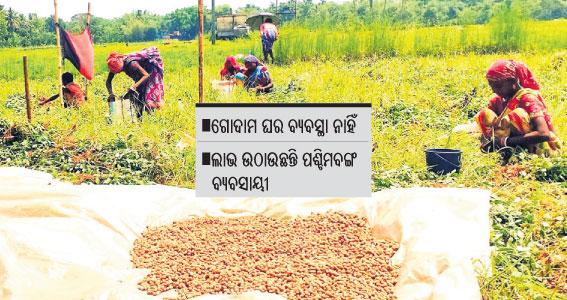 ଜଳେଶ୍ୱର, ୨୮ା୫ ଚିନାବାଦାମ ଚାଷ ଏକ ଅର୍ଥକାରୀ ଫସଲ। ବାଲେଶ୍ୱର ଜିଲା ଜଳେଶ୍ୱର ଅଞ୍ଚଳରେ ଏହା ବ୍ୟାପକ ଚାଷ ହୋଇଥାଏ ା ବିହନ ମିଳିବା ଓ ଅମଳ ପରେ ବିକ୍ରି ସୁବିଧା ନ ଥିବାରୁ ଚାଷୀମାନେ ଅଭାବୀ ବିକ୍ରିର ସମ୍ମୁଖୀନ ହେଉଛନ୍ତି। ପଶ୍ଚିମବଙ୍ଗ ବ୍ୟବସାୟୀ ଜଳେଶ୍ୱର ଚାଷୀଙ୍କୁ ଆଗୁଆ ବହୁ ମୂଲ୍ୟରେ ବିହନ ଯୋଗାଇ ଅମଳ ପରେ କମ୍ ମୂଲ୍ୟରେ କିଣିଥାନ୍ତି ା ଜଳେଶ୍ୱରରେ ଚିନିବାଦାମ ରଖିବା ଲାଗି ସାମଗ୍ରିକ ଭାବେ ଗୋଦାମ ଘର ନ ଥିବା ଓ ବିଶେଷ ବଜାର ନ ଥିବାରୁ ଚାଷୀ ପଶ୍ଚିମବଙ୍ଗ ବ୍ୟବସାୟୀଙ୍କୁ କମ୍ ମୂଲ୍ୟରେ ବିକ୍ରି କରିଆସୁଛି ା