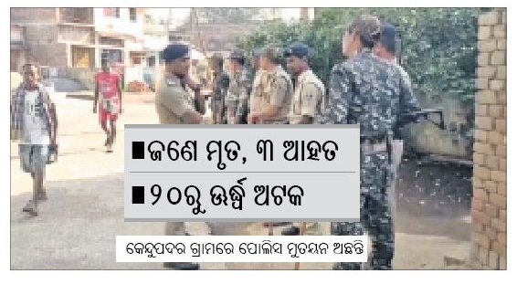 ଆସିକା,୧୪ା୩ (ଡି.ଏନ.ଏ): ଆସିକା ବ୍ଲକର ଗାଙ୍ଗପୁର ଥାନା ଅନ୍ତର୍ଗତ କେନ୍ଦୁପଦର ଗ୍ରାମରେ ଶନିବାର ରାତିରେ ନିର୍ବାଚନ ପରବର୍ତ୍ତି ହିଂସା ଦେଖାଦେଇଛି ା ଗୋଟିଏ ଗୋଷ୍ଠୀର ଆକ୍ରମଣରେ ଅପର ଗୋଷ୍ଠୀର ଜଣକର ମୃତ୍ୟୁ ଘଟିଥିଲା ବେଳେ ଅନ୍ୟ ୩ଜଣ ଗୁରୁତର ହୋଇଛନ୍ତି। ମୃତକ ହେଲେ ସେହି ଗ୍ରାମର ବୁଲୁ ସ୍ବାଇଁ। ଆହତମାନେ ବଳରାମ ପୋଲାଇ, ଦୁର୍ଗାପ୍ରସାଦ ପାଣିଗ୍ରାହୀ ଓ ଅବିନାଶ ବରାଡ। ସମସ୍ତ ଆହତଙ୍କୁ ଆସିକା ସରକାରୀ ଡାକ୍ତରଖାନାରେ ଭର୍ତ୍ତି କରାଯାଇଥିଲା। ସେଠାରେ ଡାକ୍ତର ବୁଲୁଙ୍କୁ ମୃତ ଘୋଷଣା କରିଥିଲେ। ଗୁରୁତର ଅବିନାସଙ୍କୁ ବ୍ରହ୍ମପୁର ବଡମେଡିକାଲକୁ ପଠାଯାଇଛି। ଏହି ଘଟଣା ପରେ କେନ୍ଦୁପଦର ଗ୍ରାମରେ ପ୍ରବଳ ଉତ୍ତେଜନା ଦେଖାଯାଇଥିଲା। ମୃତ ଓ ଆହତଙ୍କ ସହ ସେମାନଙ୍କ ସମର୍ଥକଙ୍କ ବହୁ ବାଇକ ମଧ୍ୟ ଭଙ୍ଗାରୁଜା ହୋଇଛି ା ଖବର ପାଇ ଭଞ୍ଜନଗର ଏସ୍ଡିପିଓ ଶୁଭ୍ରାଶୁଂ ଶେଖର ମିଶ୍ର, ଆସିକା ଏସ୍ଡିପିଓ ଉମାଶଙ୍କର ସିଂ, ଗାଙ୍ଗପୁର ଅଧିକାରୀ ଦେବ କୁମାର ଗମାଙ୍ଗ, ଆସିକା ଥାନାଧିକାରୀ ପ୍ରଶାନ୍ତ କୁମାର ସାହୁ, ସଶସ୍ତ୍ର ପୋଲିସ ସହ ସଂପୃକ୍ତ ଗ୍ରାମରେ ପହଞ୍ଚତ୍ ପରିସ୍ଥିତି ନିୟନ୍ତ୍ରଣ କରିଥିଲେ ା ଏ ନେଇ ନବୀନ ପଣ୍ଡାଙ୍କ ଅଭିଯୋଗ କ୍ରମେ ପୋଲିସ ନଂ.୧୦୧/୨୨ରେ ମାମଲା ରୁଜୁ କରିଥିବା ବେଳେ ଅନ୍ୟଗୋଷ୍ଠୀର ଦିବ୍ୟଲତା ସ୍ବାଇଁଙ୍କ ଏତଲାକୁ ଭିତ୍ତି କରି ୧୦୨/୨୨ରେ ମାମଲା ରୁଜୁ ହୋଇଛି। ସମ୍ଭାବ୍ୟ ଅଶାନ୍ତି ଆଶଙ୍କାରେ ସେହି ଗ୍ରାମରେ ୨ ସେକ୍ସନ ପୋଲିସ ମୁତୟନ କରାଯାଇଛି। ଏହି ଘଟଣାରେ ପୋଲିସ ୨୦ରୁ ଉର୍ଦ୍ଧ୍ୱ ବ୍ୟକ୍ତିଙ୍କୁ ଥାନାରେ ଅଟକ ରଖି ତଦନ୍ତ ଚଳାଇଛି। ରବିବାର ଗଞ୍ଜାମ ଜିଲା ଅତିରିକ୍ତ ଏସ୍ପି. ବିଜୟ ମଲ୍ଲିକ ଗାଙ୍ଗପୁର ଥାନାରେ ପହଞ୍ଚତ୍ ପରିସ୍ଥିତି ଅନୁଧ୍ୟାନ କରିଥିଲେ। ପଞ୍ଚାୟତ ନିର୍ବାଚନକୁ କେନ୍ଦ୍ର କରି ୨ ପ୍ରତିପକ୍ଷ ଗୋଷ୍ଠୀ ମଧ୍ୟରେ ଲାଗି ରହିଥିବା ତୀବ୍ର ଉତ୍ତେଜନାର ପରିଣତି ବୋଲି କୁହାଯାଇଛି ା