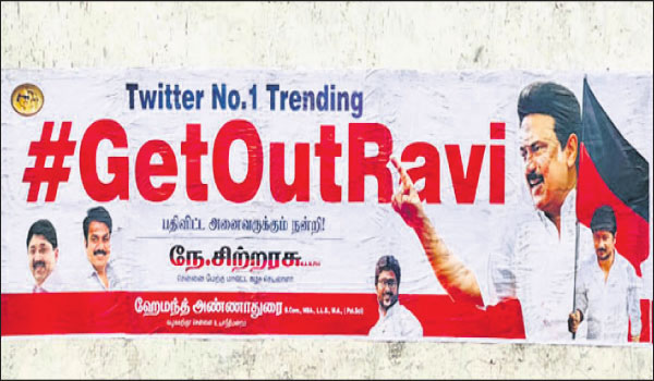 ଚେନ୍ନାଇ,୧୧ା୧: ତାମିଲନାଡୁ ବିଧାନସଭାରେ ଅଭିଭାଷଣକୁ ନେଇ ଶାସକ ଦଳ ଡିଏମ୍କେ ଏବଂ ରାଜ୍ୟପାଳ ଆର୍.ଏନ୍. ରବିଙ୍କ ମଧ୍ୟରେ ବିବାଦର ଦିନକ ପରେ ଚେନ୍ନାଇର ବିଭିନ୍ନ ସ୍ଥାନରେ ‘ରବି ବାହାରିଯାଅ’ ପୋଷ୍ଟର ଲଗାଯାଇଛି। ଉକ୍ତ ପୋଷ୍ଟରରେ ମୁଖ୍ୟମନ୍ତ୍ରୀ ଏମ୍.କେ. ଷ୍ଟାଲିନ୍ଙ୍କ ଫଟୋ ରହିଛି। ଶାସକ ଦଳର ଟୁଇଟର ହ୍ୟାଣ୍ଡଲରେ ମଧ୍ୟ ରାଜ୍ୟପାଳଙ୍କୁ ସମାଲୋଚନା କରାଯାଇଛି। ଏହାର ପ୍ରତିବାଦରେ ପୁଡ଼ୁକୋଟ୍ଟାଇଠାରେ ସ୍ଥାନୀୟ ଭାଜପା କାର୍ଯ୍ୟକର୍ତ୍ତାମାନେ ରାଜ୍ୟପାଳଙ୍କୁ ପ୍ରଶଂସା କରି ପୋଷ୍ଟର ଲଗାଇଛନ୍ତି। ଅନେକ ଭାଜପା ଟୁଇଟର ହ୍ୟାଣ୍ଡଲରେ ଶାସକ ଦଳକୁ ନିନ୍ଦା କରାଯାଇଛି।
