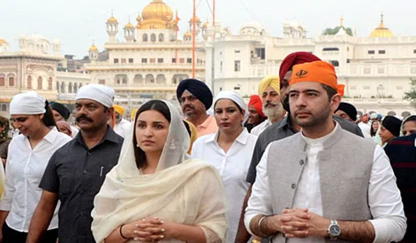 ପରିଣୀତି ଚୋପ୍ରା ଏବଂ ରାଘବ ଚଡ୍ଡା ବିବାହ ପୂର୍ବରୁ ସ୍ବର୍ଣ୍ଣ ମନ୍ଦିରରେ ପହଞ୍ଚି ପ୍ରାର୍ଥନା କରିଛନ୍ତି। ଯେଉଁଥିରେ ପରିଣୀତି ଏକ ବେଜ ସୁଟରେ ନଜର ଆସିଥିବାବେଳେ ରାଘବ ଚଡ୍ଡା ଏକ ଧଳା କୁର୍ତ୍ତା ପାଇଜାମା ଏବଂ ନେହେରୁ ଜ୍ୟାକେଟରେ ନଜର ଆସିଥିଲେ। ଉଭୟଙ୍କ ଫଟୋ ଦେଖି ପ୍ରଶଂସକମାନେ ବହୁତ ଖୁସି ଅଛନ୍ତି।