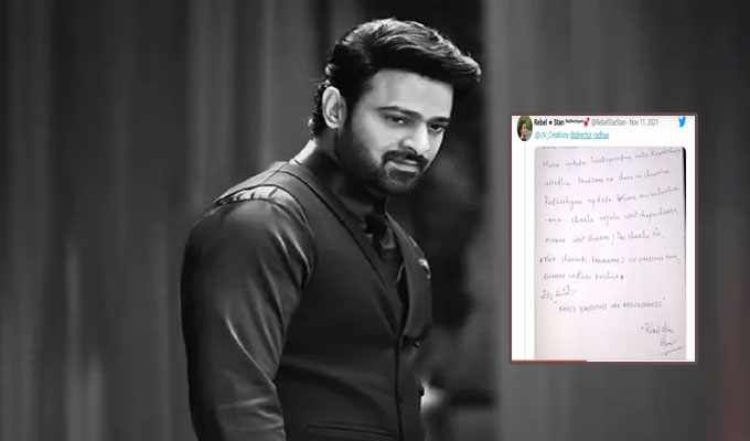 ହାଇଦ୍ରାବାଦ: ସୁପରଷ୍ଟାର ପ୍ରଭାସଙ୍କ ପାଇଁ ପ୍ରଶଂସକ ଲେଖିଲେ ସୁଇସାଇଡ୍‌ ନୋଟ୍‌। ସେ ବି ତାଙ୍କ ଆଗାମୀ ଫିଲ୍ମ ‘ରାଧେ ଶ୍ୟାମ’ ସହ ଜଡିତ ଅପ୍‌ଡେଟ୍‌ ଶେୟାର ନ କରିବା ଲାଗି। କଥାଟି ଆଶ୍ଚର୍ଯ୍ୟ କଲେ ହେଁ ସତ। ବିଭିନ୍ନ ସୋସିଆଲ ମିଡିଆରେ ଏବେ ଏହି ନୋଟ୍‌ ଭାଇରାଲ ହେଉଛି।