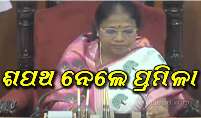 ଭୁବନେଶ୍ୱର,୨୨ା୯: ପ୍ରଥମ ମହିଳା ବାଚସ୍ପତି ଭାବେ ବରିଷ୍ଠ ବିଧାୟିକା ପ୍ରମିଳା ମଲ୍ଲିକ ଶୁକ୍ରବାର ନିର୍ଦ୍ୱନ୍ଦ୍ୱରେ ନିର୍ବାଚିତ ହୋଇଛନ୍ତି। ଅନ୍ୟ କେହି ନାମାଙ୍କନପତ୍ର ଭରି ନ ଥିବାରୁ ପ୍ରମିଳା ନିର୍ଦ୍ୱନ୍ଦ୍ୱରେ ନିର୍ବାଚିତ ହୋଇଛନ୍ତି। ଏନେଇ ଗୃହରେ ଉପବାଚସ୍ପତି ବିଧିବଦ୍ଧ ଭାବେ ଘୋଷଣା କରିଛନ୍ତି। ବାଚସ୍ପତି ଭାବେ ପ୍ରମିଳା ଦାୟିତ୍ୱ ଗ୍ରହଣ କରିବା ପରେ ମୁଖ୍ୟମନ୍ତ୍ରୀ ନବୀନ ପଟ୍ଟନାୟକ, ବିରୋଧୀ ତଥା ଭାଜପା ପକ୍ଷରୁ ମୁଖ୍ୟ ସଚେତକ ମୋହନ ମାଝି ଓ କଂଗ୍ରେସ ବିଧାୟକ ଦଳ ନେତା ନରସିଂହ ମିଶ୍ର ଶୁଭେଚ୍ଛା ଜଣାଇଛନ୍ତି।