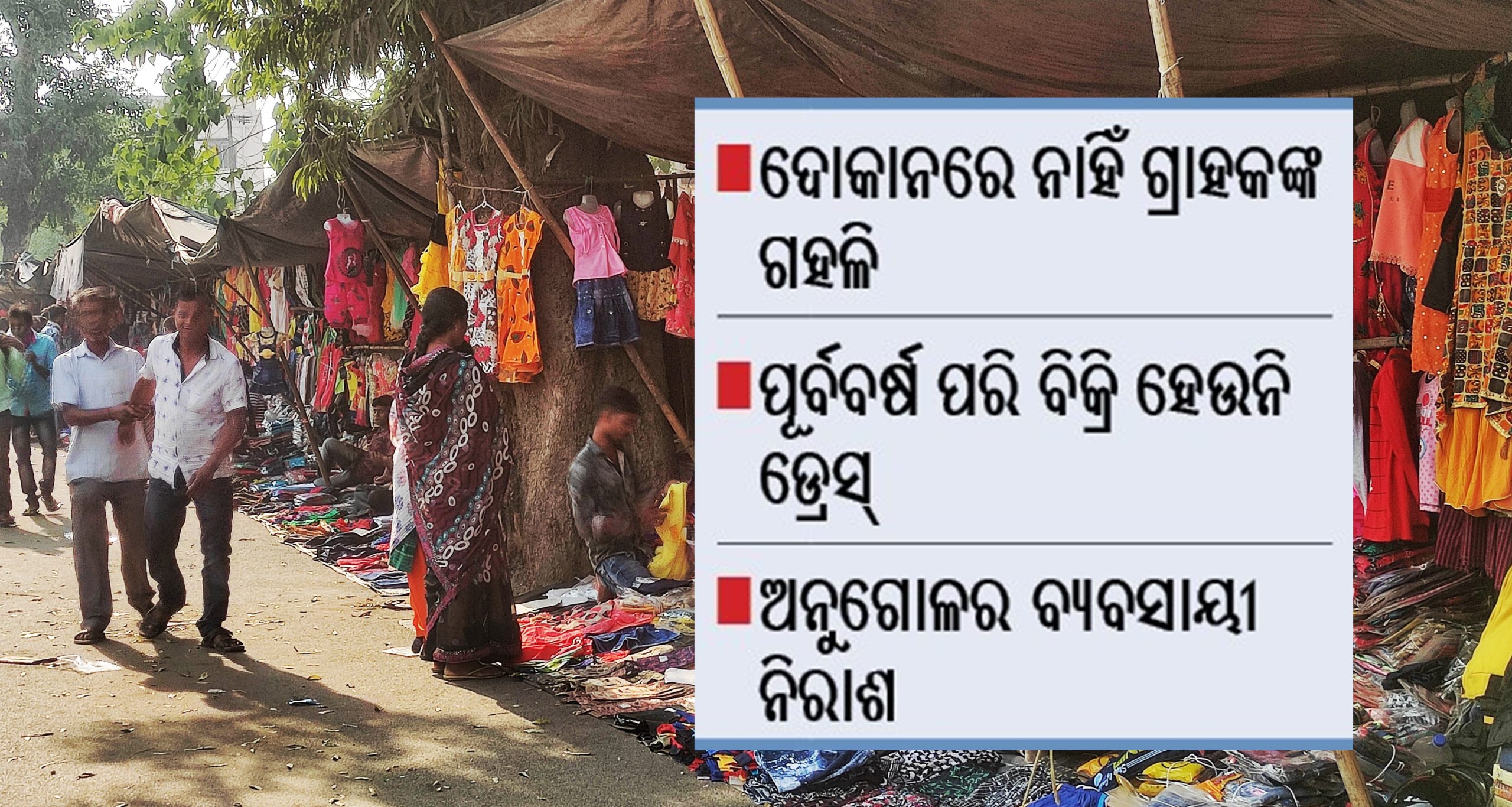 କରୋନା କାରଣରୁ କିଛି ମାସ ହେଲା ବ୍ୟବସାୟ ନାହିଁ। ପ୍ରଥମାଷ୍ଟାମୀରେ ବର୍ଷର ଶେଷ ବେପାର ହେବ ବୋଲି ଆଶା ଥିଲା। କିନ୍ତୁ ଲୋକଙ୍କ ହାତରେ ପୂର୍ବବର୍ଷ ଭଳି ଅର୍ଥ ନ ଥିବାରୁ ସେମାନେ କିଣାକିଣି ପ୍ରତି ଆଗ୍ରହ ଦେଖାଉ ନାହାନ୍ତି। କିପରି କମ୍ ମୂଲ୍ୟରେ ପୋଷାକ ପାଇବେ ସେଥିପାଇଁ ମୂଲଚାଲ ଅଧିକ କରୁଛନ୍ତି। ତେଣୁ ହାତରୁ ଗ୍ରାହକ ଖସିଯିବା ଭୟରେ କିଣା ଦରରେ ପୋଷାକ ବିକିବାକୁ ବାଧ୍ୟ ହେଉଛୁ। ଦିନକୁ ଅଳ୍ପ କିଛି ପୋଷାକ ବିକ୍ରି ହେଉଥିଲେ ମଧ୍ୟ ଯେପରି ଲାଭ ମିଳିବା କଥା ତାହା ପାଉନାହୁଁ।