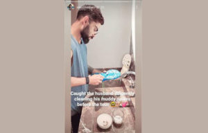 ଅନୁଷ୍କା ନିଜ ଇନ୍ଷ୍ଟାଗ୍ରାମ୍ରେ ଏହି ଫଟୋକୁ ଶେୟାର କରିଛନ୍ତି। ଫଟୋରେ କୋହଲି ନିଜର ପ୍ରିୟ ଜୋତାକୁ ହାତରେ ଧରି ଟୁଥ୍ବ୍ରଶ୍ରେ ତାଙ୍କୁ ସଫା କରୁଛନ୍ତି। ଏହି ଫଟୋକୁ ଶେୟାର କରି ଅନୁଷ୍କା କ୍ୟାପଶନରେ ଲେଖିଛନ୍ତି, ସ୍ବାମୀ ଯାତ୍ରା କରିବା ପୂର୍ବରୁ ସ୍ପାଇକ୍ସ୍ ଧୋଇଛନ୍ତି। ଏହି ସମୟରେ କୋହଲି, ଧୂସର ରଙ୍ଗର ଚଷମା ପିନ୍ଧିଥିବା ଦେଖିବାକୁ ମିଳୁଛି।