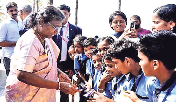 କୋଲ୍ଲମ, ୧୮ା୩: ରାଷ୍ଟ୍ରପତି ଦ୍ରୌପଦୀ ମୁର୍ମୁ ଶୁକ୍ରବାର ପ୍ରଥମ ଥର ପାଇଁ କେରଳ ଗସ୍ତ କରିଥିଲେ। ସେ ପୂର୍ବାହ୍ନରେ କୋଲ୍ଲମ ଜିଲାର ଅମୃତପୁରୀ ଆଶ୍ରମରେ ଆୟୋଜିତ ଏକ କାର୍ଯ୍ୟକ୍ରମରେ ଯୋଗଦେବା ପାଇଁ ଯାଉଥିବାବେଳେ କରୁଣାଗପ୍ପଲ୍ଲୀ ରାସ୍ତାକଡ଼ରେ କେତେଜେଣ ସ୍କୁଲ ପିଲା ତାଙ୍କୁ ଦେଖିବା ଲାଗି ଅପେକ୍ଷା କରିଥିଲେ। ରାଷ୍ଟ୍ରପତି ସେମାନଙ୍କୁ ଦେଖି ନିଜ କାର୍କେଡ୍କୁ ଅଟକାଇଥିଲେ। କାର୍ରୁ ଓହ୍ଲାଇ କୁନିକୁନି ଛାତ୍ରୀଛାତ୍ରଙ୍କୁ ଚକୋଲେଟ ବାଣ୍ଟିବା ସହିତ ସେମାନଙ୍କ ସହ କଥା ହୋଇଥିଲେ। ରାଷ୍ଟ୍ରପତିଙ୍କ ଏଭଳି ବ୍ୟବହାର ପିଲାଙ୍କୁ ଉତ୍ସାହିତ କରିଥିଲା। କିଛି ସମୟ ପରେ ରାଷ୍ଟ୍ରପତି ମୁର୍ମୁ ସେମାନଙ୍କଠାରୁ ବିଦାୟ ନେଇଥିଲେ। ପିଲାମାନେ ତାଙ୍କୁ ଧନ୍ୟବାଦ ଅର୍ପଣ କରିଥିଲେ। ସାମାଜିକ ଗଣମାଧ୍ୟମରେ ଏହି ଦୃଶ୍ୟର ଭିଡିଓ ବହୁଳ ପ୍ରସାରିତ ହୋଇଛି।