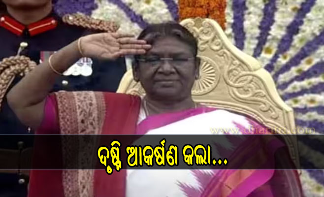 ଗୋଲାପୀ ଏବଂ ଧଳା ରଙ୍ଗର ଶାଢ଼ି ସହ ରାଷ୍ଟ୍ରପତି ଏକ ବାଦାମୀ ରଙ୍ଗର ଶଲ୍ ପିନ୍ଧିଥିଲେ। କର୍ତ୍ତବ୍ୟ ପଥରେ ତାଙ୍କ ଆଗମନ ବେଳେ ପ୍ରଧାନମନ୍ତ୍ରୀ ନରେନ୍ଦ୍ର ମୋଦି ତାଙ୍କର ସ୍ବାଗତ କରିଥିଲେ। ବାୟୁସେନା ଅଧିକାରୀ ଫ୍ଲାଇଟ ଲେଫ୍ଟନାଣ୍ଟ କୋମଲ ରାନୀ ଜାତୀୟ ପତାକା ଉତ୍ତୋଳନ କରିଥିଲେ। ଏଥିସହ ଜାତୀୟ ସଙ୍ଗୀତ ବାଜିବା ସହ ରାଷ୍ଟ୍ରପତିଙ୍କୁ ୨୧ ତୋପ ସଲାମୀ ଦିଆଯାଇଥିଲା।