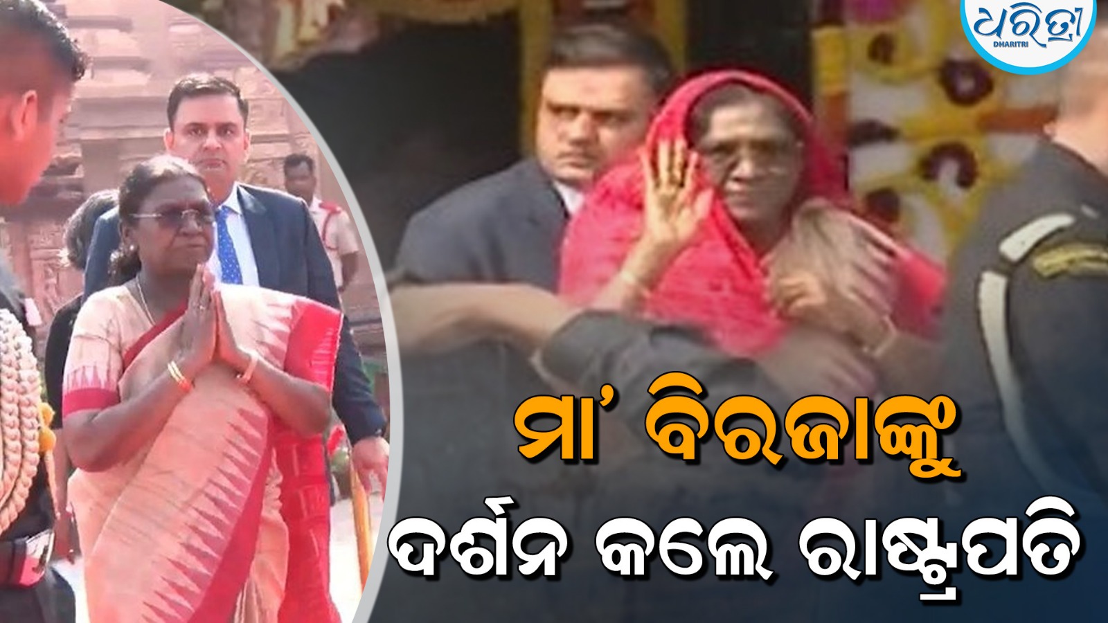 ଯାଜପୁର,୩।୨: ରାଷ୍ଟ୍ରପତି ଦ୍ରୌପଦୀ ମୁର୍ମୁ ୬ ଦିନିଆ ଓଡ଼ିଶା ଗସ୍ତରେ ଆସିଛନ୍ତି। ରାଷ୍ଟ୍ରପତି ମଙ୍ଗଳବାର ଯାଜପୁର ଅଭିମୁଖେ ଗସ୍ତ କରିଛନ୍ତି। ଭୁବନେଶ୍ୱର ବିମାନବନ୍ଦରରୁ ସ୍ବତନ୍ତ୍ର ହେଲିକପ୍ଟର ଯୋଗେ ଯାଜପୁର ପ୍ରଶାସନିକ ପଡ଼ିଆଠାରେ ଅବତରଣ କରି ସେଠାରୁ ସିଧା ମା’ ବିରଜାଙ୍କ ଦର୍ଶନ କରିଛନ୍ତି। ମୁଣ୍ଡରେ ଓଢଣା ଦେଇ ସମ୍ପୂର୍ଣ୍ଣ ପାରମ୍ପରିକ ଓଡ଼ିଆ ଢଙ୍ଗରେ ସେ ମା’ଙ୍କ ଆଶୀର୍ବାଦ ଭିକ୍ଷା କରିଥିଲେ। ଏହାପରେ ନାଭିଗୟାଠାରେ ପିତୃପୁରୁଷଙ୍କ ଉଦ୍ଦେଶ୍ୟରେ ପିଣ୍ଡଦାନ କରିଥିଲେ। ମା’ ବିରଜାଙ୍କୁ ଦର୍ଶନ ପରେ ମନ୍ଦିର ପରିକ୍ରମା କରୁଥିବାର ଦେଖାଯାଇଥିଲା। ଯାଜପୁର ଗସ୍ତ ସମୟରେ ରାଷ୍ଟ୍ରପତିଙ୍କୁ ଶାନ୍ତିର ପ୍ରତୀକ ବୁଦ୍ଧ ମୂର୍ତ୍ତି ଉପହାର ଭେଟି ଦିଆଯାଇଥିଲା। ତାଙ୍କୁ ଦେଖିବା ପାଇଁ ଲୋକଙ୍କ ଭିଡ଼ ଜମିଥିଲା।