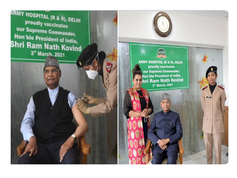 ନୂଆଦିଲ୍ଲୀ,୩।୩: ସାର୍ବଜନୀକ କରୋନା ଟିକାକରଣ ଅଭିଯାନର ଦ୍ୱିତୀୟ ପର୍ଯ୍ୟାୟରେ ରାଷ୍ଟ୍ରପତି ରାମନାଥ କୋବିନ୍ଦ ବୁଧବାର ଯିକାର ପ୍ରଥମ ଡୋଜ୍ ନେଇଛନ୍ତି। ରାଷ୍ଟ୍ରପତି ଦିଲ୍ଲୀର ଆର୍ ଆର୍ ସେନା ହସ୍ପିଟାଲରେ ଟିକା ନେବା ପାଇଁ ତାଙ୍କ ଝିଅ ସ୍ବାତୀ କୋବିନ୍ଦଙ୍କ ସହିତ ପହଞ୍ଚିଥିଲେ। ଏସମ୍ପର୍କରେ ରାଷ୍ଟ୍ରପତି ଭବନ ପକ୍ଷରୁ ଟୁଇଟ୍ କରି ସୂଚନା ପ୍ରଦାନ କରାଯାଇଛି।