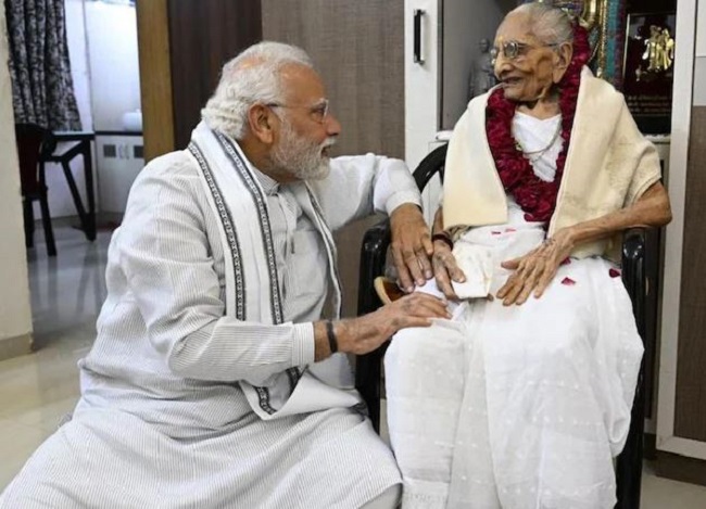 ଗାନ୍ଧିନଗର,୧୮ ।୬: ପ୍ରଧାନମନ୍ତ୍ରୀ ନରେନ୍ଦ୍ର ମୋଦିଙ୍କ ମାଆ ହିରାବେନ ମୋଦି ୧୦୦ ବର୍ଷରେ ପଦାର୍ପଣ କରିଛନ୍ତି । ଏହି ଅବସରରେ ମୋଦି ଗାନ୍ଧିନଗରସ୍ଥିତ ତାଙ୍କ ଘରେ ପହଞ୍ଚି ମା’ଙ୍କ ଆଶୀର୍ବାଦ ନେବା ସହ ପୂଜାର୍ଚ୍ଚନା କରିଛନ୍ତି । ହିରାବେନଙ୍କ ପାଦ ଛୁଇଁ ପ୍ରଣାମ କରି ମୋଦି ମା’ ହିରାବେନଙ୍କୁ ଏକ ସାଲ ଉପହାର ଦେଇଛନ୍ତି । ଏହାପରେ ସେଠାରେ ଉପସ୍ଥିତ ସମସ୍ତ ପ୍ରିୟ ପରିଜନଙ୍କୁ ମିଠା ବଣ୍ଟାଯାଇଛି । ହିରାବେନଙ୍କ ୧୦୦ତମ ଜନ୍ମଦିନ ଅବସରରେ ଘରେ ସ୍ୱତନ୍ତ୍ର ପୂଜାର ଆୟୋଜନ କରାଯାଇଥିବା ବେଳେ ପ୍ରଧାନମନ୍ତ୍ରୀ ପାୱାଗଡରେ ମାଆ କାଳୀଙ୍କ ମନ୍ଦିରରେ ପୂଜାର୍ଚ୍ଚନା କରିବାର କାର୍ଯ୍ୟକ୍ରମ ରହିଛି । କାଳି ମାଆଙ୍କ ଉପରେ ପ୍ରଗାଢ ବିଶ୍ୱାସ ରଖିଥିବା ମୋଦି ସେଠାରେ ମାଆଙ୍କ ସୁସ୍ଥ ଓ ଦୀର୍ଘ ଜୀବନ କାମନା କରି ପୂଜାର୍ଚ୍ଚନା କରିବେ ବୋଲି ଜଣାପଡିଛି ।