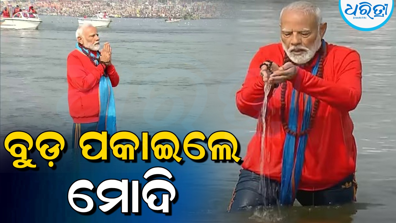 ନୂଆଦିଲ୍ଲୀ,୫।୨: ପ୍ରୟାଗରାଜରେ ଆୟୋଜିତ ମହାକୁମ୍ଭରେ ବୁଧବାର ପ୍ରଧାନମନ୍ତ୍ରୀ ନରେନ୍ଦ୍ର ମୋଦି ତ୍ରିବେଣୀ ସଙ୍ଗମରେ ବୁଡ଼ ପକାଇଛନ୍ତି। ଏହାପରେ ପ୍ରଧାନମନ୍ତ୍ରୀ ମୋଦି ଗଙ୍ଗା ପୂଜା କରୁଛନ୍ତି। ଏହି ସମୟରେ ସିଆରପିଏଫ ଏବଂ ସେନା କର୍ମଚାରୀମାନେ ଉପସ୍ଥିତ ରହିଛନ୍ତି।