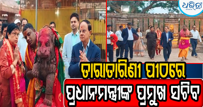 ପୁରୁଷୋତ୍ତମପୁର,୨।୧୨(ସିମାଞ୍ଚଳ ମିଶ୍ର) ପ୍ରଧାନମନ୍ତ୍ରୀ ନରେନ୍ଦ୍ର ମୋଦିଙ୍କ ପ୍ରମୁଖ ସଚିବ ପ୍ରମୋଦ କୁମାର ମିଶ୍ର ଓ ତାଙ୍କ ସ୍ତ୍ରୀ ସୋମବାର ଗଞ୍ଜାମ ଗ୍ରସ୍ତରେ ଆସି ପ୍ରସିଦ୍ଧ ଇଷ୍ଟଦେବୀ ମା’ ତାରାତାରିଣୀଙ୍କ ଦର୍ଶନ କରିବା ସହ ପୂଜାର୍ଚ୍ଚନା କରି ଆର୍ଶୀବାଦ ନେଇଛନ୍ତି। ଏହାସହ ମନ୍ଦିରରେ ହୋଇଥିବା ବିକାଶକୁ ନେଇ ଖୁସି ପ୍ରକାଶ କରିଥିଲେ। ମନ୍ଦିର ଚତୁଃପାର୍ଶ୍ୱରେ ଚାଲିଥିବା ବିଭିନ୍ନ ଉନ୍ନୟନମୂଳକ କାର୍ଯ୍ୟମାନକୁ ବୁଲି ଦେଖିବା ସହ ମନ୍ଦିରର ଉନ୍ନୟନ କାର୍ଯ୍ୟ କିଭଳି ଚାଲିଛି ଓ ଭକ୍ତମାନେ କେତେ ସୁରୁଖୁରୁରେ ମା’ଙ୍କୁ ଦର୍ଶନ କରୁଛନ୍ତି ସେ ନେଇ ଜିଲାପାଳ ଦିବ୍ୟଜ୍ୟୋତି ପରିଡାଙ୍କ ସହ ସଚିବ ପ୍ରମୋଦ କୁମାର ମିଶ୍ର ଆଲୋଚନା କରିବା ସହ ମନ୍ଦିରର ସେବାୟତଙ୍କ ସହ ମଧ୍ୟ ଆଲୋଚନା କରିଥିଲେ।