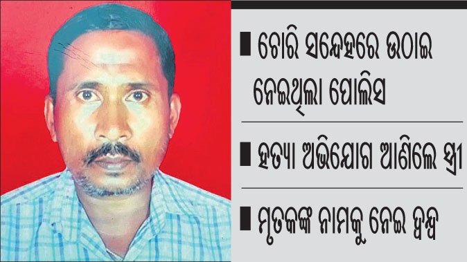 ଅନ୍ୟପକ୍ଷରେ ପ୍ରଦୀପଙ୍କ ସ୍ତ୍ରୀ ବନିତାଙ୍କ ଅଭିଯୋଗ ଅନୁଯାୟୀ, ରବିବାର ରାତିରେ ସ୍ବାମୀ ପ୍ରଦୀପ ମୋ ବାପଘର ଲୋକ ରହୁଥିବା ରସୁଲଗଡ ଘରକୁ ଯାଉଥିଲେ। ଏହାପରଠାରୁ ତାଙ୍କ ମୋବାଇଲ ଫୋନ୍ ସୁଇଚ୍ ଅଫ୍ ହୋଇଯାଇଥିଲା। ଭଡାଘର ମାଲିକଙ୍କୁ ରାତି ପ୍ରାୟ ୧୧ଟାରେ ପୋଲିସ ଆସି ଏକ ଫଟୋ ଦେଖାଇବା ସହ ଚିହ୍ନିଛନ୍ତି ନା ନାହିଁ ପଚାରିଥିଲେ। ଏହାପରେ ରାତି ପ୍ରାୟ ୧ଟାରେ ପୁଣି ପୋଲିସ ଆସି ସ୍ବାମୀଙ୍କ ମୃତ୍ୟୁ ହୋଇଥିବା ଜଣାଇବା ସହ କ୍ୟାପିଟାଲ ହସ୍ପିଟାଲ ଫାଣ୍ଡିରେ ପହଞ୍ଚତ୍ବାକୁ କହିଥିଲେ। ତେବେ ସ୍ବାମୀଙ୍କ ନାମରେ ପୋଲିସ ଚୋରି ମାମଲା ଥିବା କହୁଥିବାବେଳେ ସେ କେବେ ଚୋରି କରିନାହାନ୍ତି ବୋଲି ବନିତା କହିଛନ୍ତି।