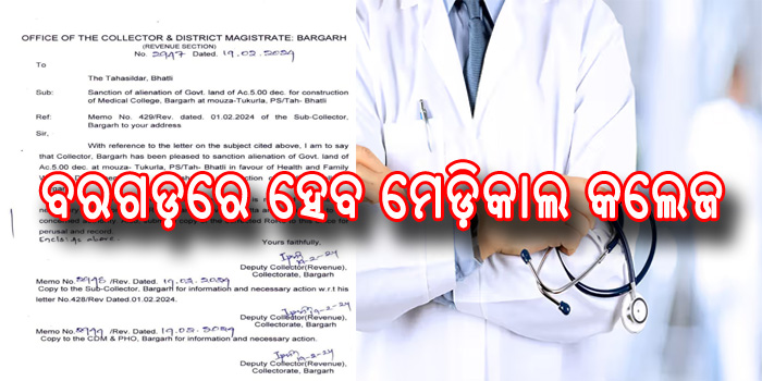 ସୂଚନା ଅନୁଯାୟୀ, ଜିଲାର ଭଟଲି ତହସିଲ ଅନ୍ତର୍ଗତ ଟୁକୁର୍ଲା ମୌଜାରେ ରହିଥିବା ୫ଏକର ଜମିରେ ଏହି ମେଡ଼ିକାଲ କଲେଜ ସ୍ଥାପନ ହେବ । ଏଥିପାଇଁ ଜାଗା ଚିହ୍ନଟ ହୋଇଥିବା ବେଳେ ସ୍ବାସ୍ଥ୍ୟ ବିଭାଗକୁ ଚିହ୍ନିତ ଜମି ହସ୍ତାନ୍ତର ପ୍ରକ୍ରିୟା ଆରମ୍ଭ ହୋଇଛି । ଏହି କ୍ରମରେ ମଙ୍ଗଳବାର ଜିଲାପାଳଙ୍କ ନିର୍ଦ୍ଦେଶ କ୍ରମେ ଡେପୁଟି କଲେକ୍ଟର(ରାଜସ୍ବ ବିଭାଗ) ପତ୍ରସଂଖ୍ୟା-୨୯୭୪ତା-୧୯।୨।୨୦୨୪ରେ ଭଟଲି ତହସିଲଦାରଙ୍କୁ ବିହିତ ପଦକ୍ଷେପ ନେବା ପାଇଁ ଚିଠିରେ ଲେଖାଯାଇଛି।